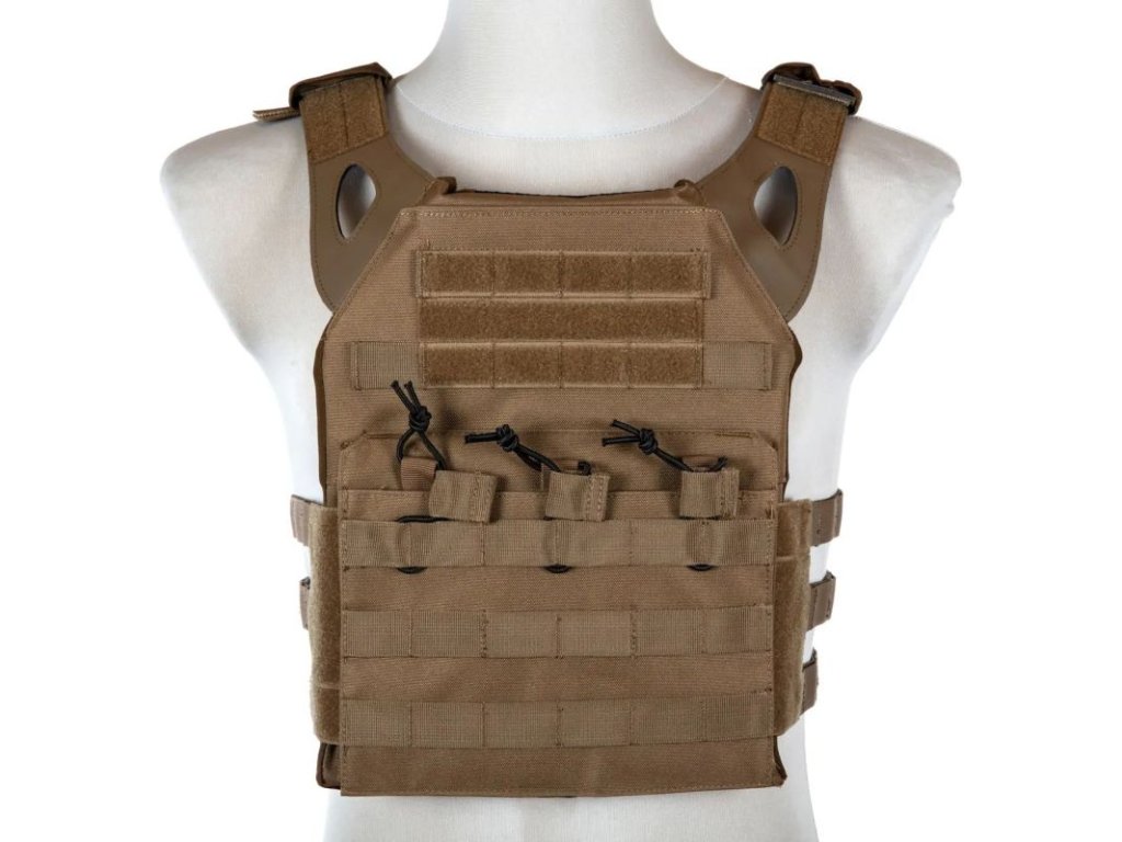 Simple and functional plate carrier made from 500D Nylon. Thanks to the skeletonized straps, the carrier is very light and comfortable. It weighs only 920g.