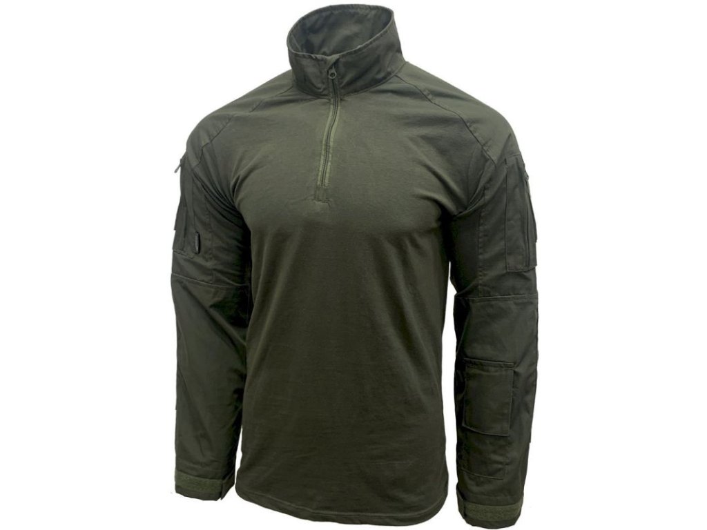 Combat shirt with high-quality workmanship. It has a high collar with a short YKK zipper. The sleeves are made from a lightweight and durable blend of cotton and polyester. The middle part of the sweatshirt is made from cotton and elastic spandex.