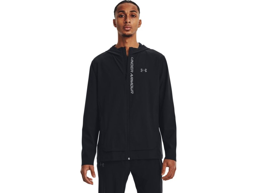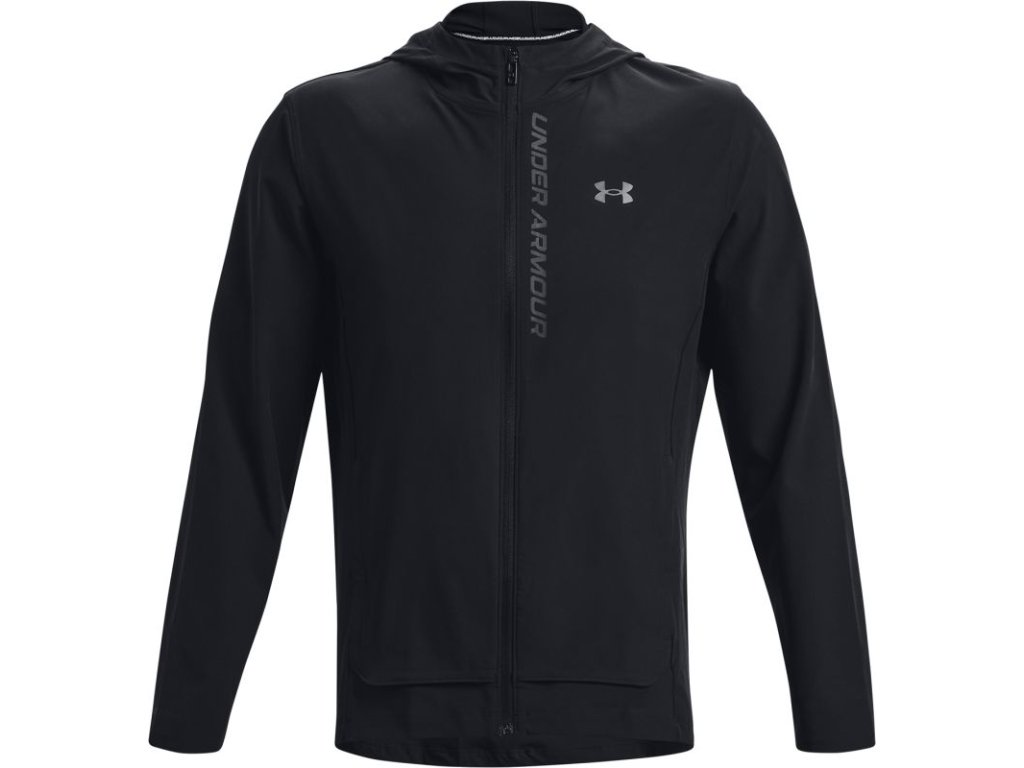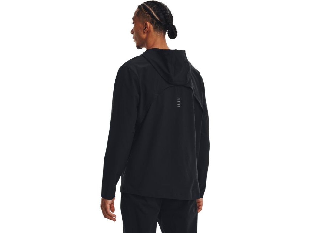 Men's jacket with hood Under Armour Outrun the Storm has a wind-resistant construction that protects you from adverse weather. The jacket is made from durable, lightweight stretch fabric that ensures better mobility and comfort. UA Storm technology repels water without reducing breathability. 4-Way Stretch technology allows for better movement in every direction.