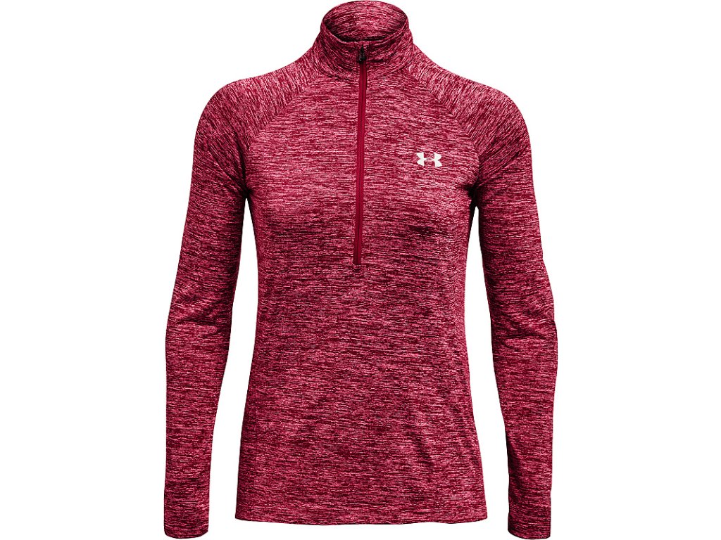 Women's Under Armour Tech Twist long sleeve shirt is made from UA Tech material, which wicks sweat away from the body to keep you dry and comfortable during performance. Suitable for all kinds of sports. Soft UA Tech fabric provides a softer and more natural feel. Advanced moisture transport system wicks sweat to keep you dry and comfortable. Higher collar with 1/2 zip. Raglan sleeves ensure an unrestricted range of motion. Angled side seams for maximum fit and performance. Under Armour logo on the front.