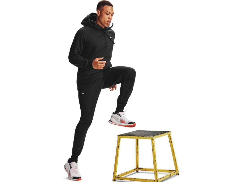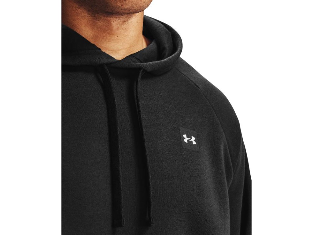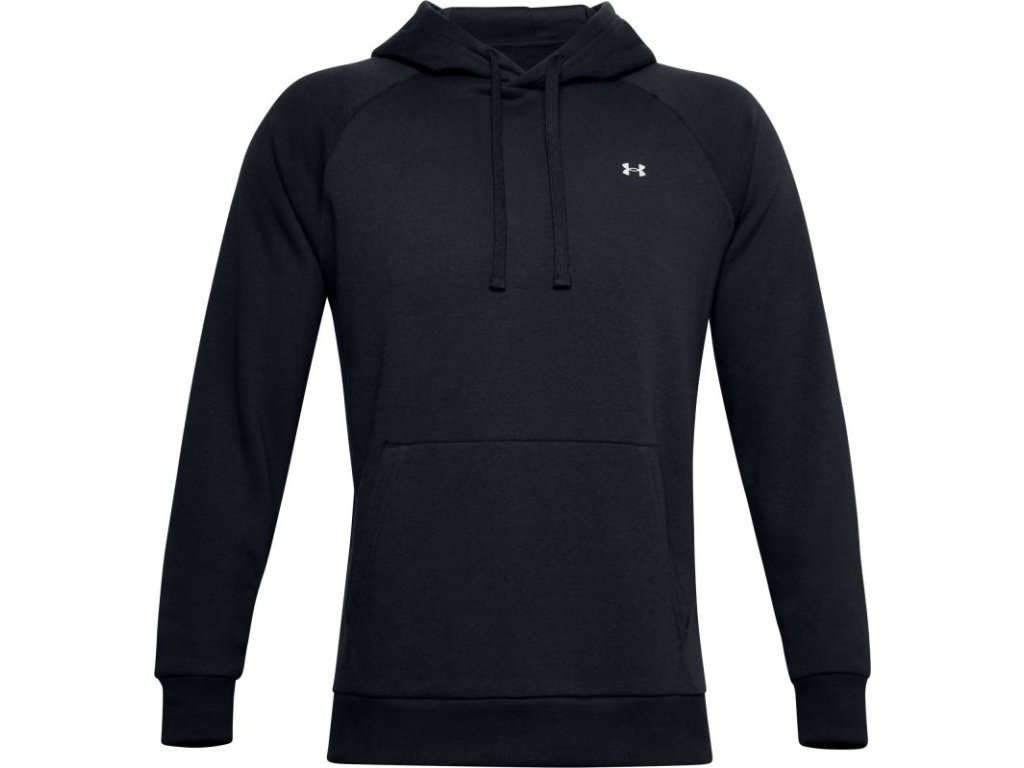 Men's hoodie Under Armour Rival in a loose fit is made from extra soft and medium-weight fleece fabric with a high cotton content and a brushed interior for greater warmth. Adjustable hood with a crossover collar. Front kangaroo pocket. Ribbed cuffs and bottom hem. Raglan sleeves.