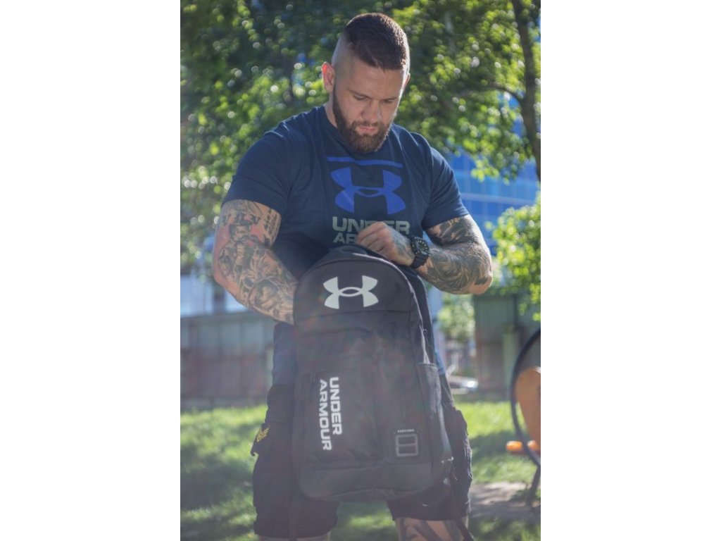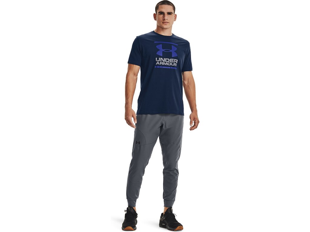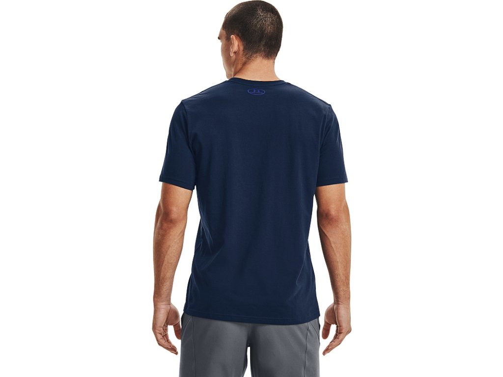 Men's sports T-shirt Under Armour Foundation with short sleeves in a loose fit is made from exceptionally soft cotton fabric for all-day comfort. Moisture Transport System technology - a special technology that wicks sweat away from your body to the surface. This allows garments to dry faster and keep athletes dry. It has a classic neckline and a loose fit that does not restrict you and at the same time provides maximum comfort throughout the wear. It features a large print with the Under Armour logo and lettering on the chest.