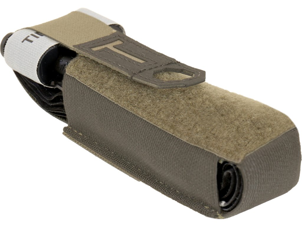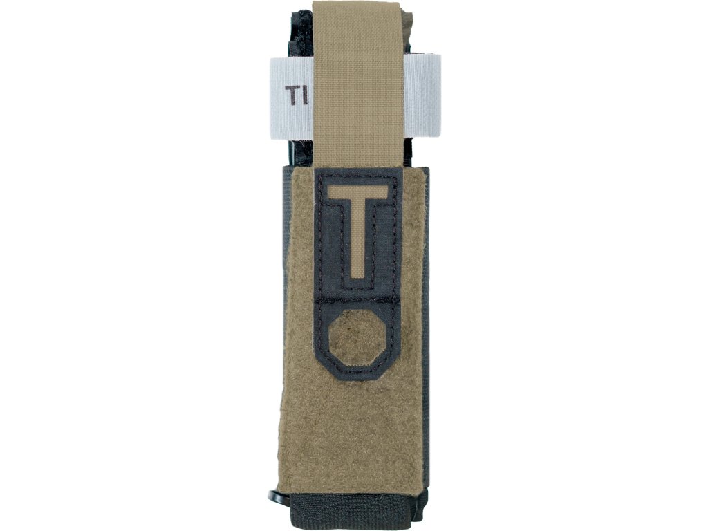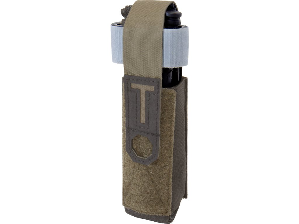 Universal tourniquet holder with laser cut-out can be attached to a belt or connected to any Warrior series carrier. Allows for one-handed opening for quick and easy removal. Attaches using one MOLLE system. The case also fits SOFTT tourniquets.