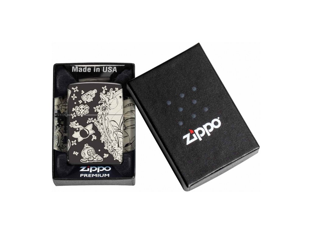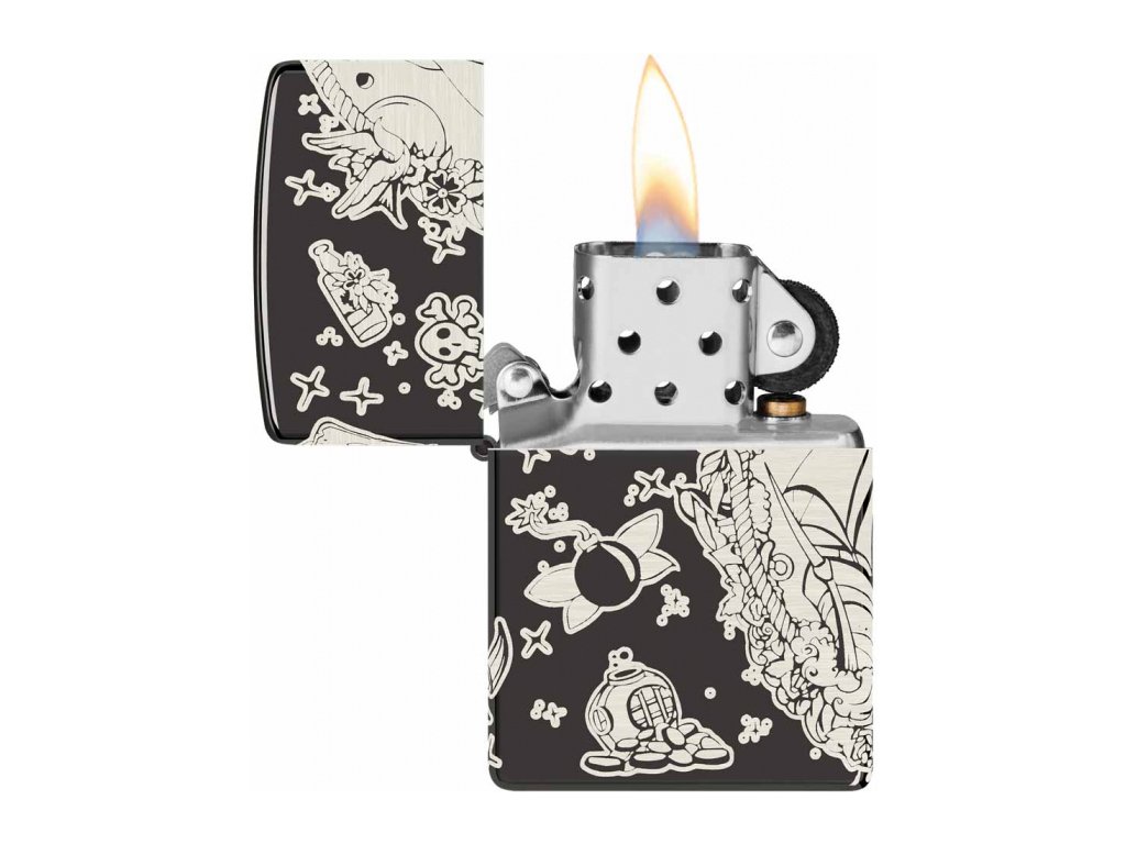 ZIPPO Lighter PIRATES TREASURE (26142). Zippo is a metal gasoline lighter with a lifetime warranty and more than 80 years of tradition. These quality lighters are manufactured exclusively in the USA.