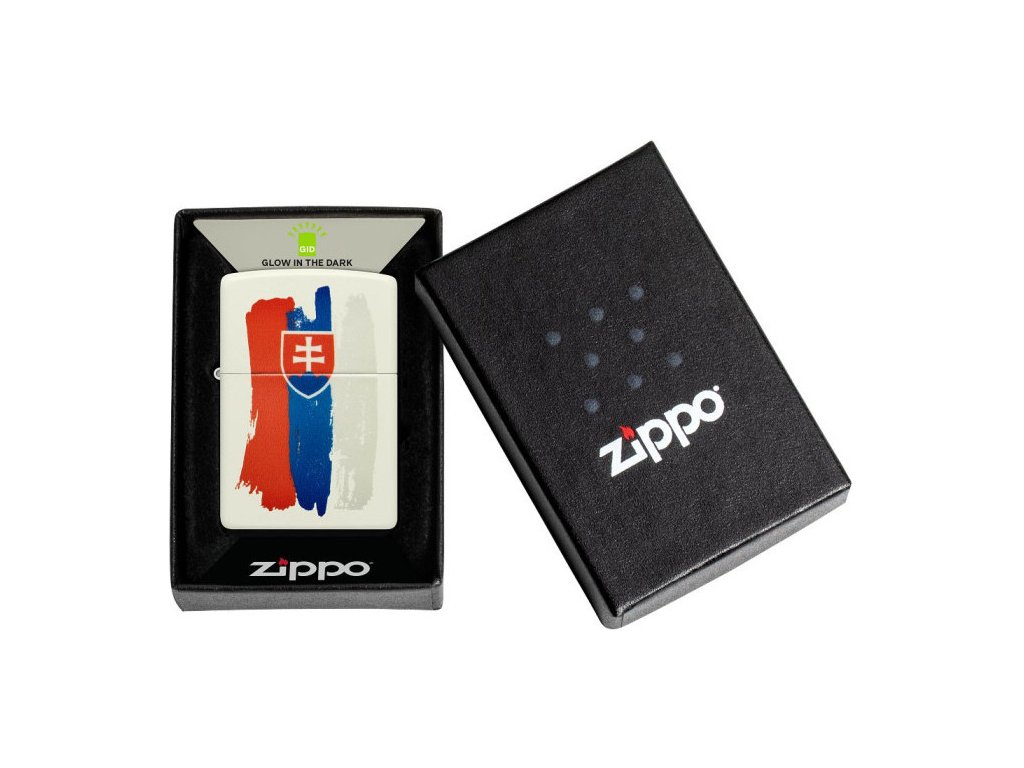 ZIPPO Lighter SLOVAKIA GLOW (26173). Zippo is a metal gasoline lighter with a lifetime warranty and more than 80 years of tradition. These quality lighters are manufactured exclusively in the USA.