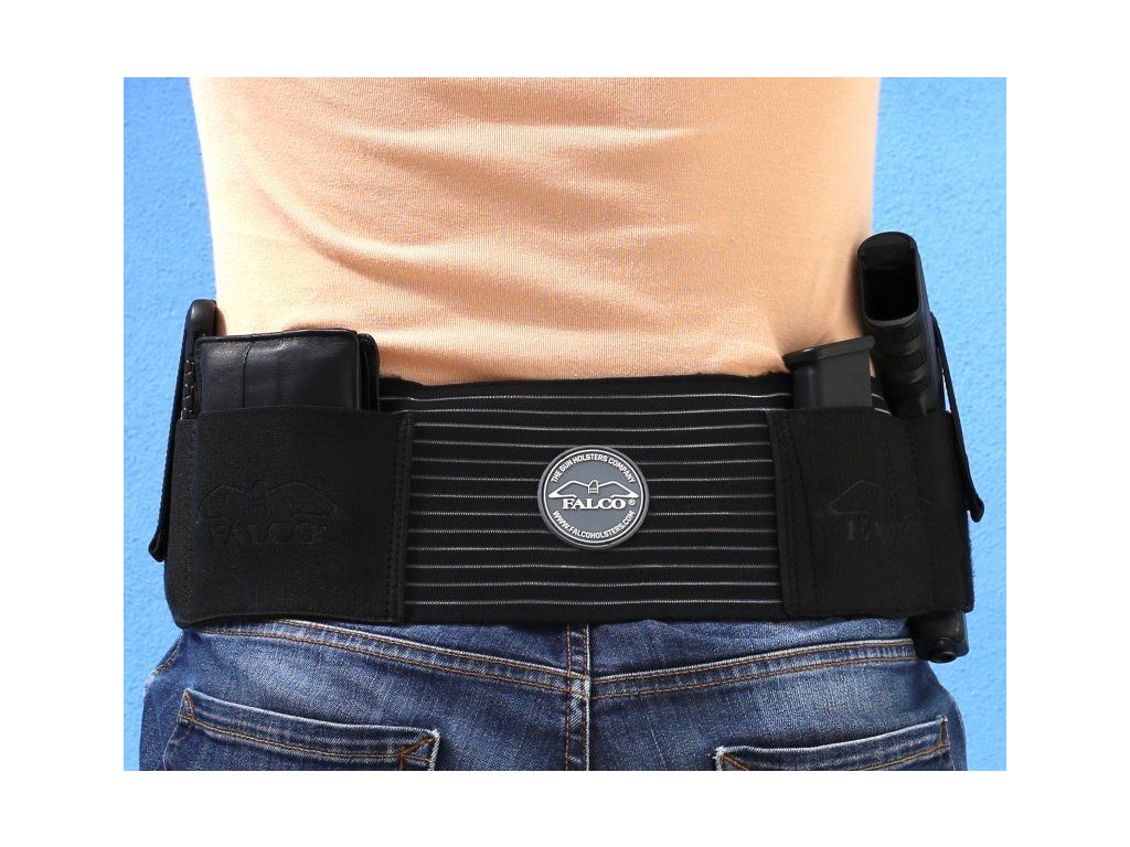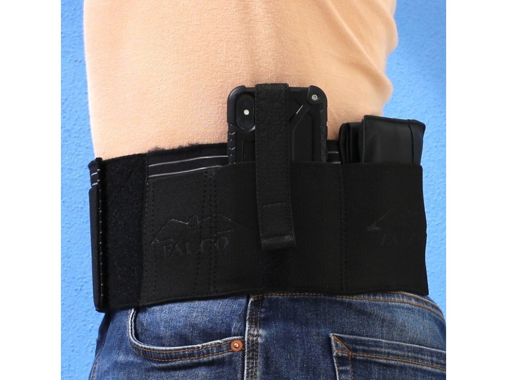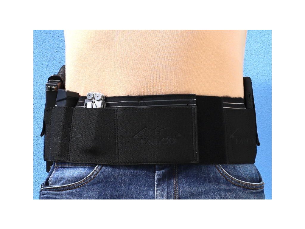 This elastic belt allows concealed carrying of a weapon under any clothing. It offers comfortable wearing while also being made of strong material. The belt includes a holster for the weapon, pouches for 2 magazines, and for documents.