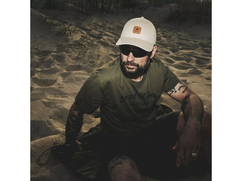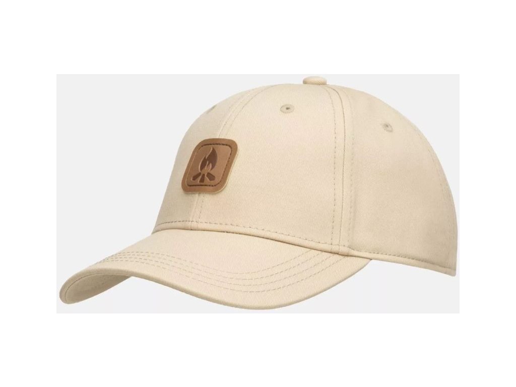 The cap is made from sturdy cotton in sand (khaki) color, which naturally blends into forest and outdoor environments. The dominant feature is a leather patch with bushcraft flame logo, symbolizing fire, campfire, and self-sufficiency in nature. Thanks to the classic adjustable closure, it easily adapts to the shape of the head and is comfortable to wear all day long.