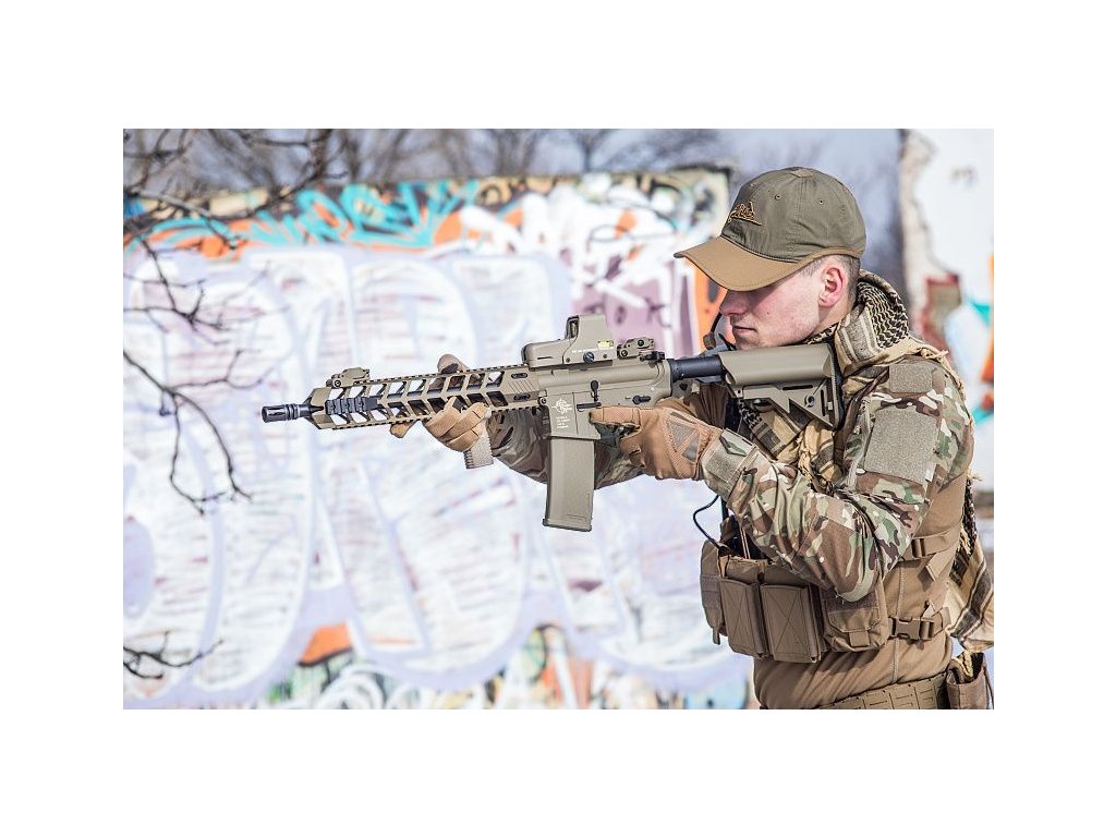 šiltovka Helikon s logom Helikon-Tex v prednej časti a velcro panelmi hore a vzadu pre jednoduchú upraviteľnosť vzhľadu.