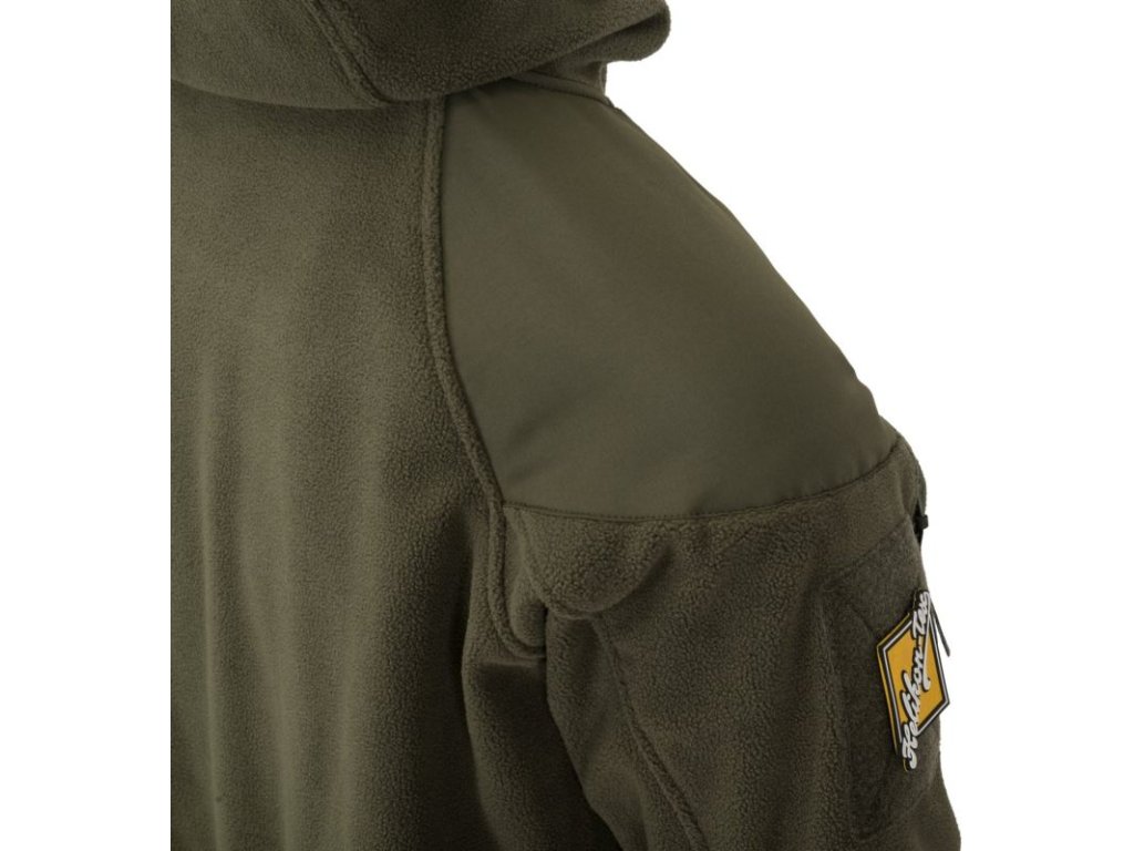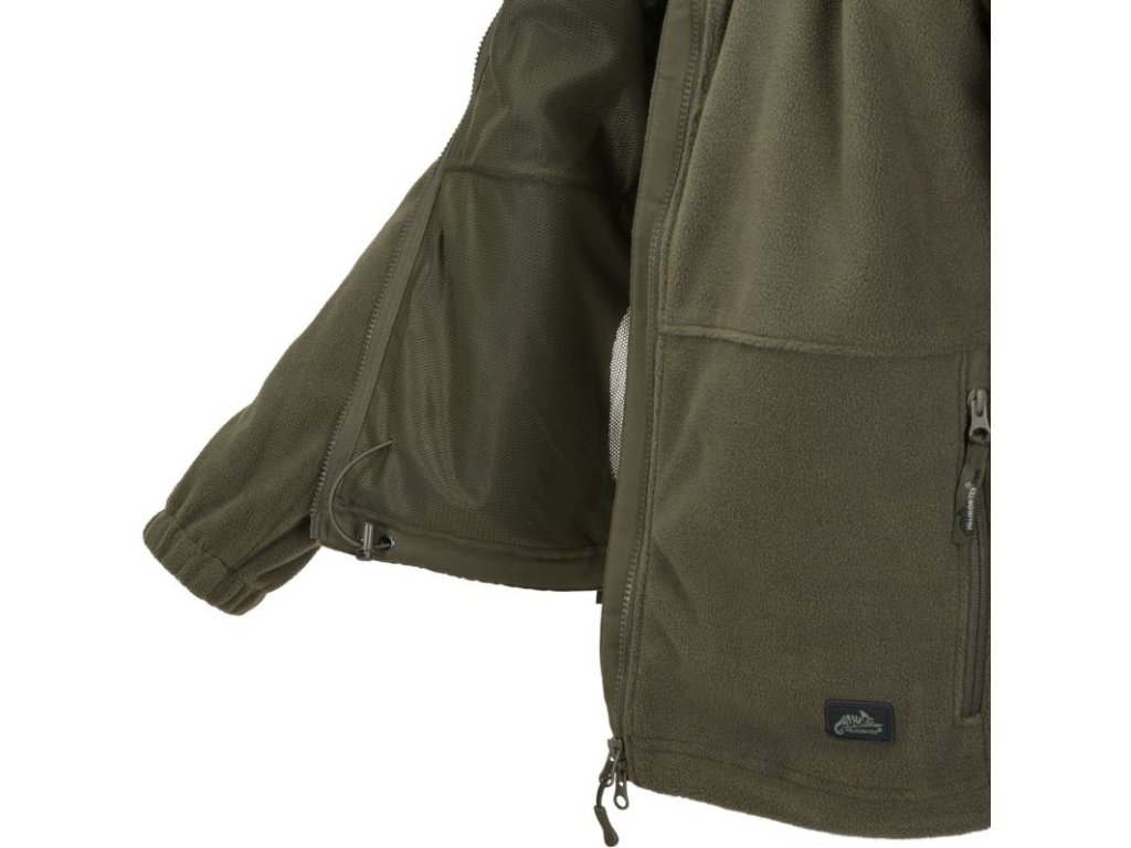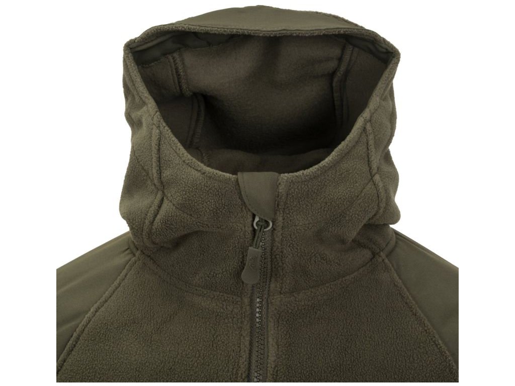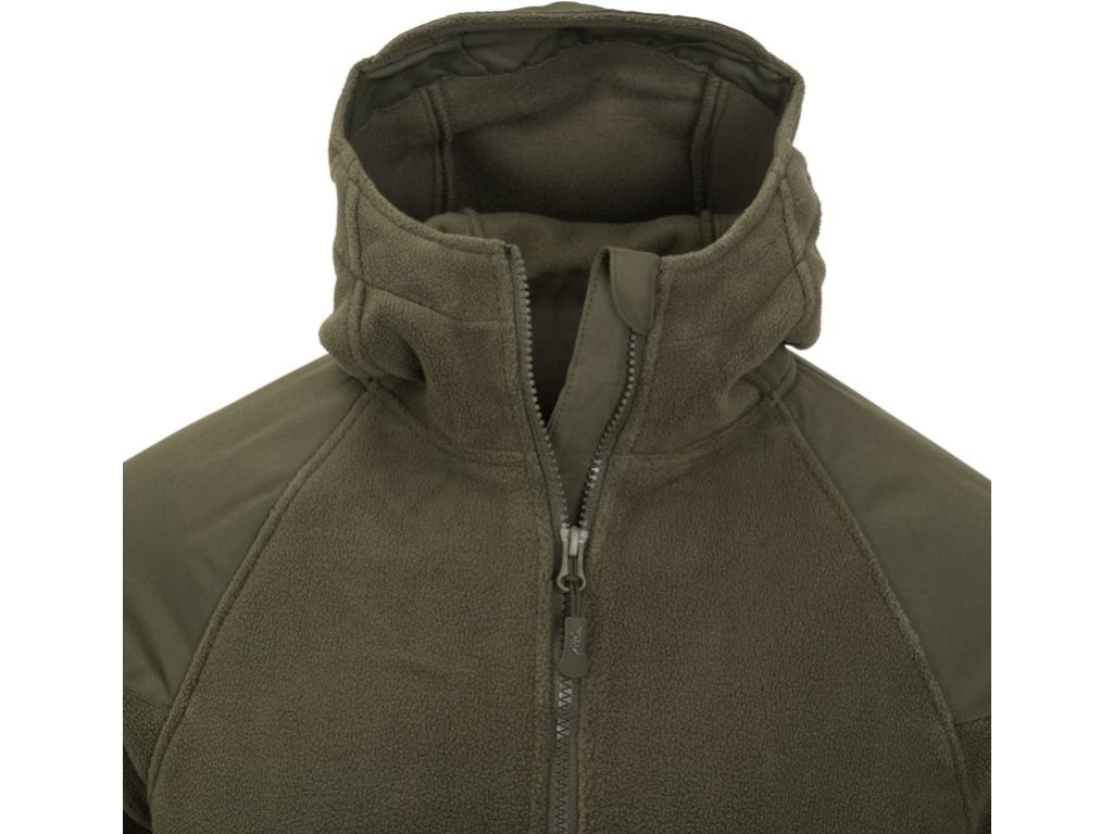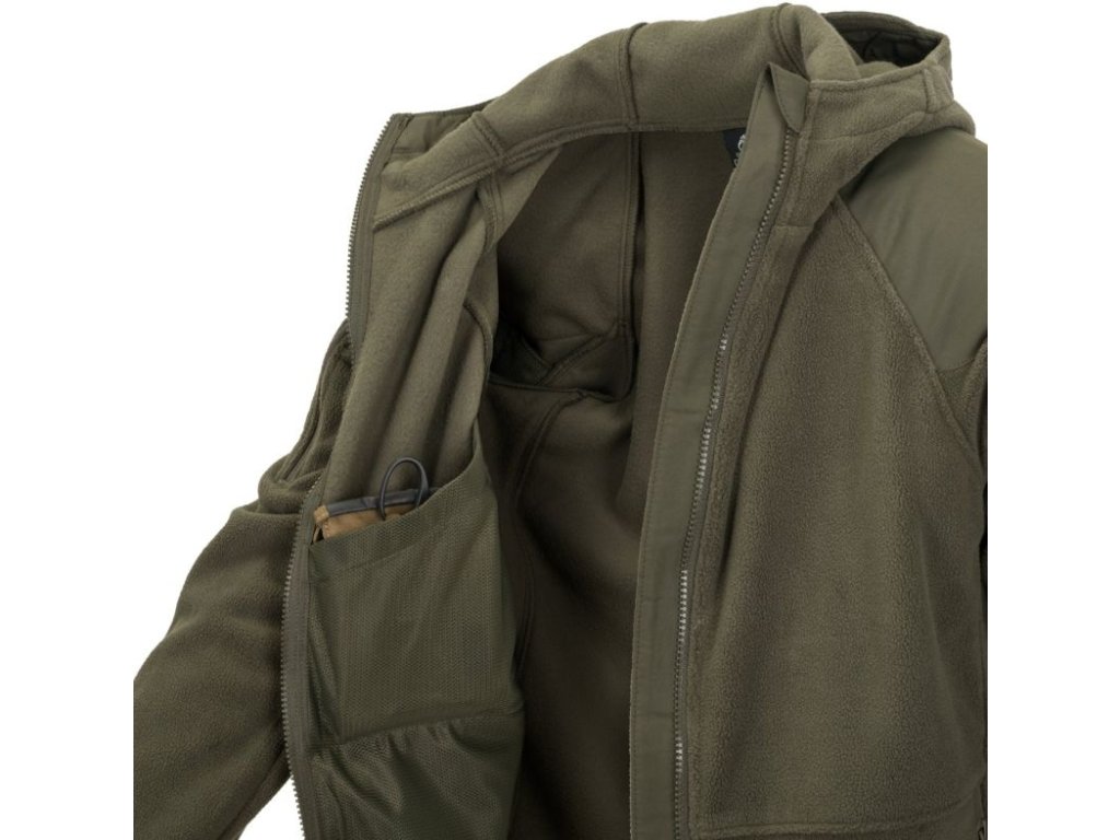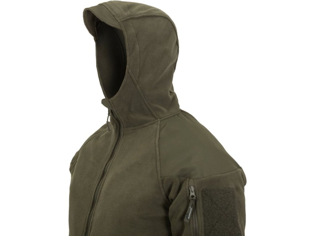 Fleecová bunda Helikon Cumulus je vyrobená z materiálu Polyester Fleece s hutnou gramážou 320g/m2. Bunda je zosilnená v lakťoch a v ramenách s veľkou kapucňou so širokým otvorom a s krátkym šiltom. Vnútorné a bočné kapsy bundy sú sieťované. Táto bunda je vynikajúca na aktívny pobyt v prírode, na airsoft, turistiku, lov rýb a zvere, atď.