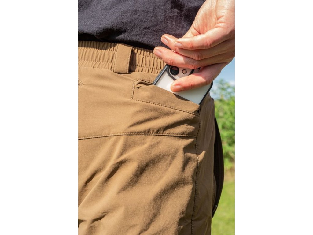 The UTILITY LIGHT SHORTS have six pockets: three with zippers (two in the front, one in the back) and two smaller ones on the sides and one small inner one for keys. Such pocket arrangement allows for better distribution of carried items. Thanks to this, the pants are not overloaded on any side and do not restrict movement. More space also means more options and greater discretion if needed.