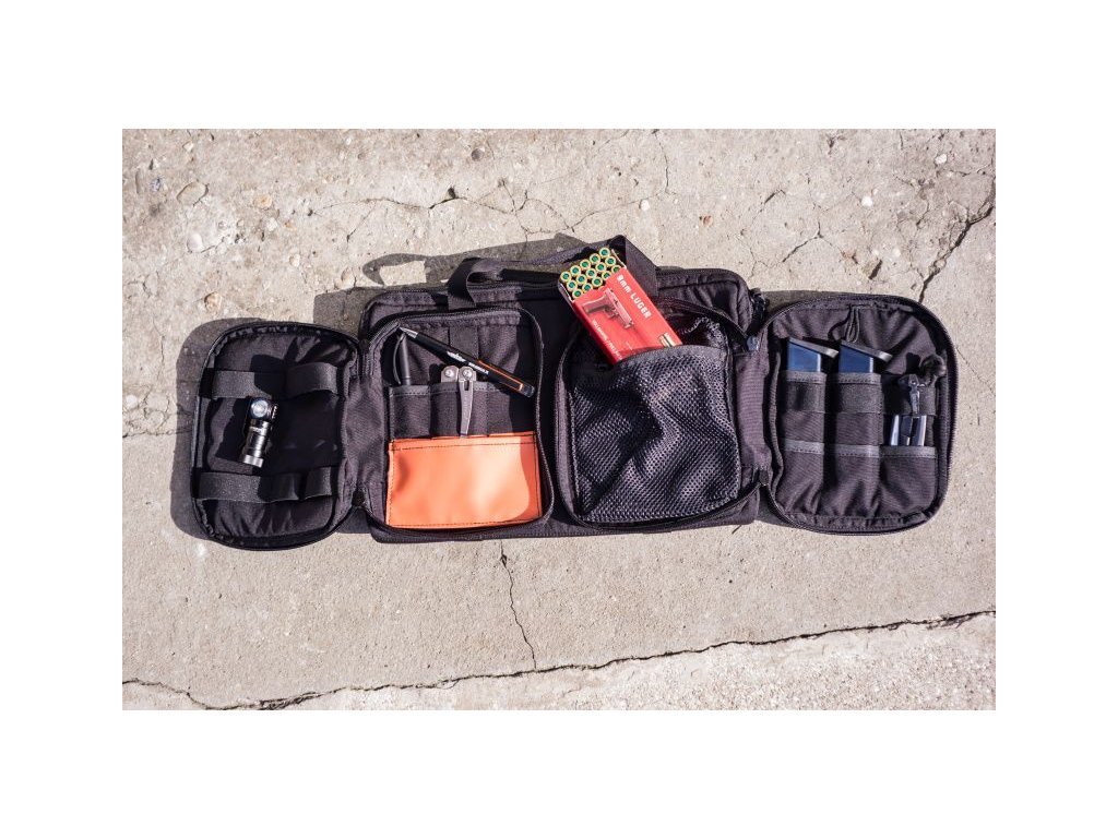 Multi Pistol® is a large case that allows you to carry up to 2 pistols with additional equipment. The pistol is placed in a zippered pocket that is padded and lined with soft velour, compatible with the universal insert system. On the top of the bag, there are two zippered pockets on one side - one for accessories and one for cleaning supplies. On the other side of the bag, there are eight magazine pockets closed with Velcro.