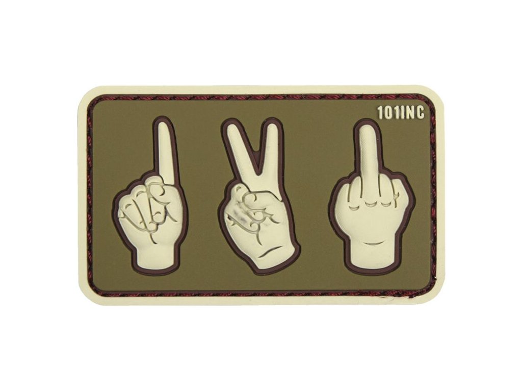 3D PVC Felvarró/Patch One, two, fuck you - zöld/barna