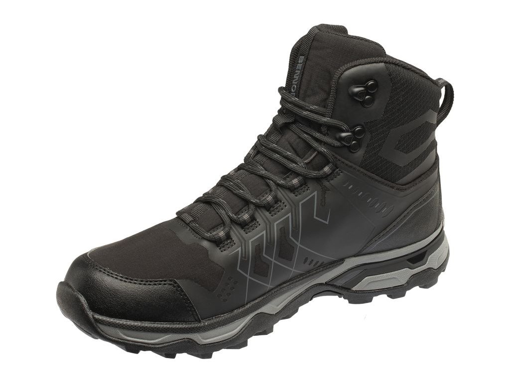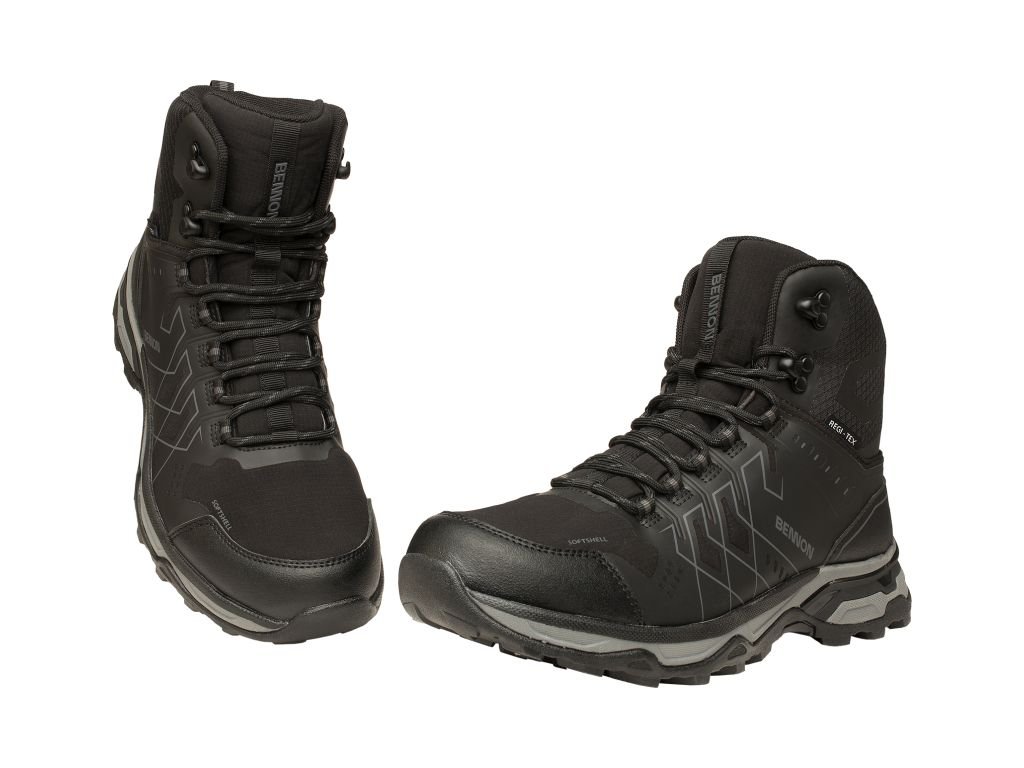 A BENNON NERO High cipők tartós és kényelmes bokamagasságú túracipők, amelyek különféle szabadtéri tevékenységekhez és mindennapi városi viselethez is alkalmasak. A softshellből és TPU-ból (termoplasztikus poliuretán) készült felső anyaguk rendkívül ellenálló a mechanikai kopással szemben, és különböző éghajlati viszonyokhoz is megfelelő. A REGI-TEX membránnak köszönhetően vízállóak és légáteresztőek, ami védelmet nyújt a nedvesség ellen, miközben optimális szellőzést biztosít. A kényelmet az Absorba XTR kivehető talpbetét biztosítja, amely csillapítja az ütéseket és támogatást nyújt a lábnak hosszabb viselés során. Az EVA hab és gumi kombinációjából készült Efekta talp könnyű, rugalmas és jó csúszásgátló tulajdonságokkal rendelkezik.
