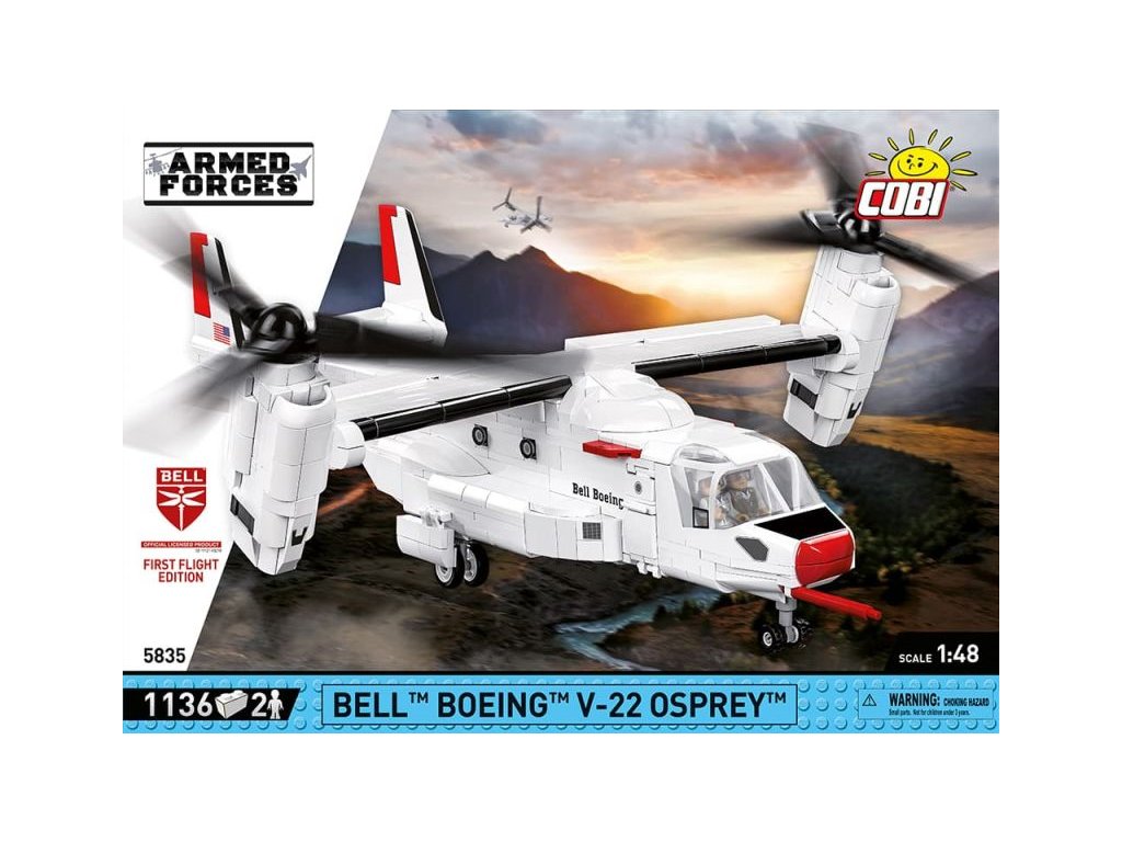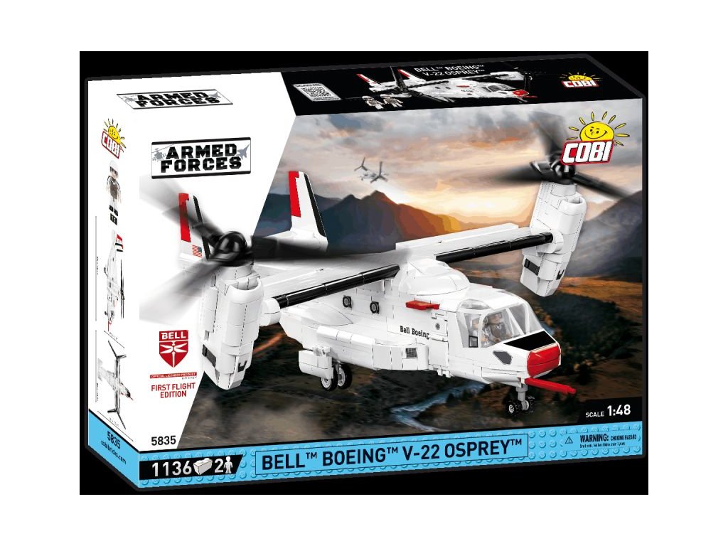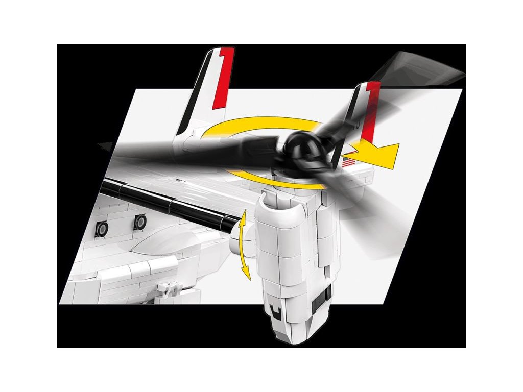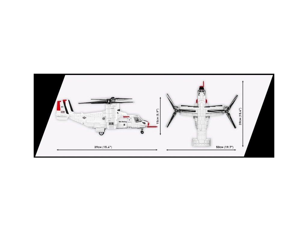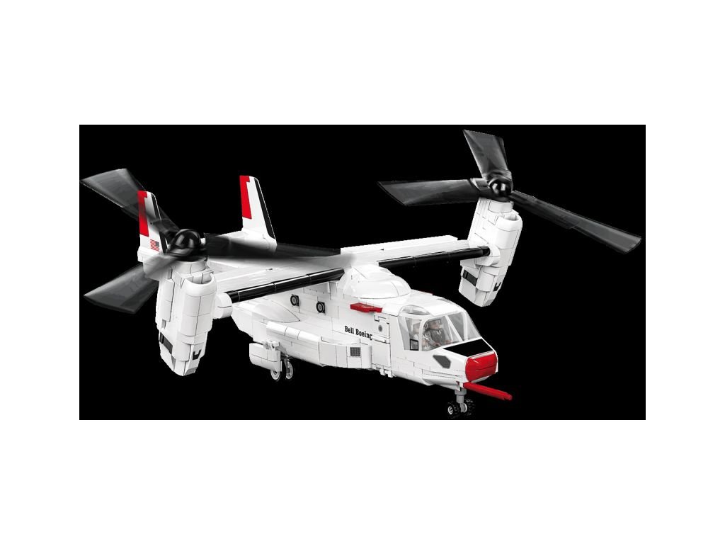 Az amerikai többcélú konvertiplán prototípusának építőkészlete a Bell Boeing vállalat színeiben. Az összeszerelt modell nyitható ajtókkal rendelkezik a személyzet beszállásához, lehajtható rakodórámpával, állítható vezérsíkokkal és forgatható motorgondolákkal. A repülőgép indítási konfigurációban saját futóművén állhat, vagy biztonságosan elhelyezhető a mellékelt állványon, amely felirattal van ellátva. A készlet két figurát tartalmaz, amelyek a Bell vállalat valódi tesztpilótáin alapulnak. Az építőkészlet a Bell Helicopter hivatalos engedélye alapján készül.