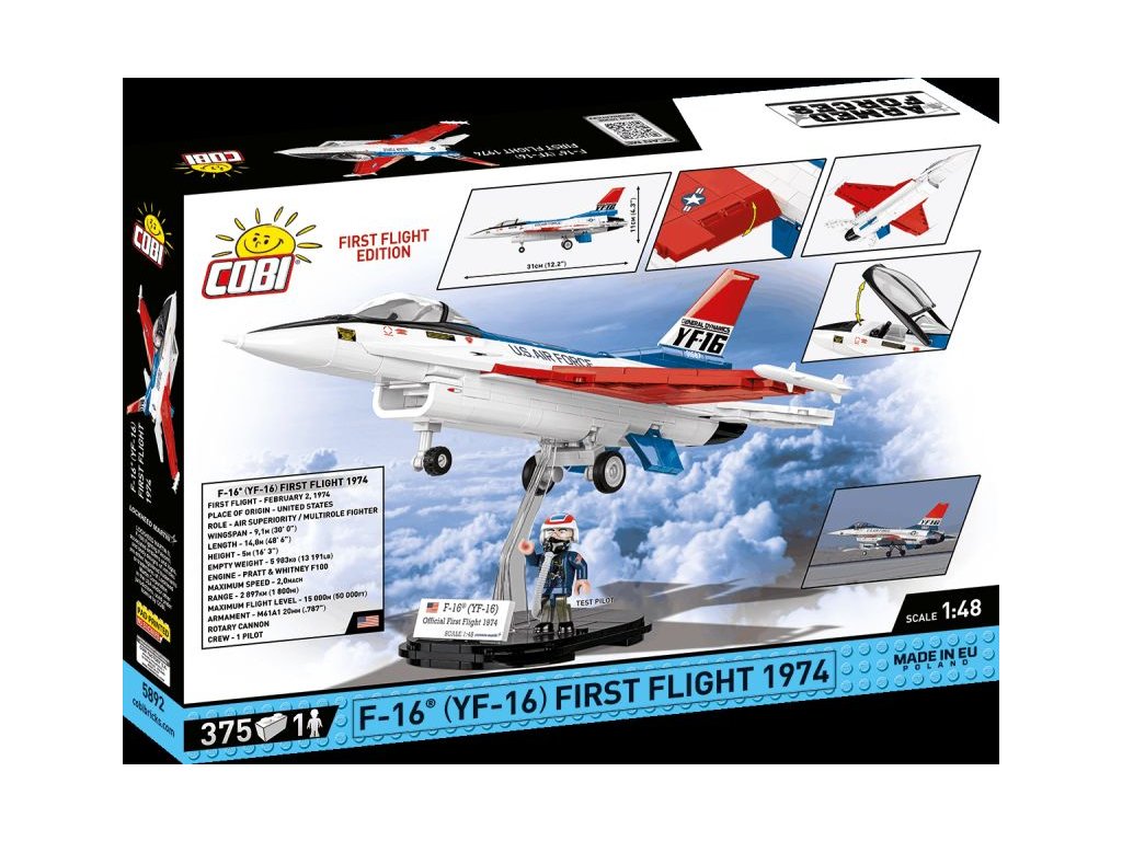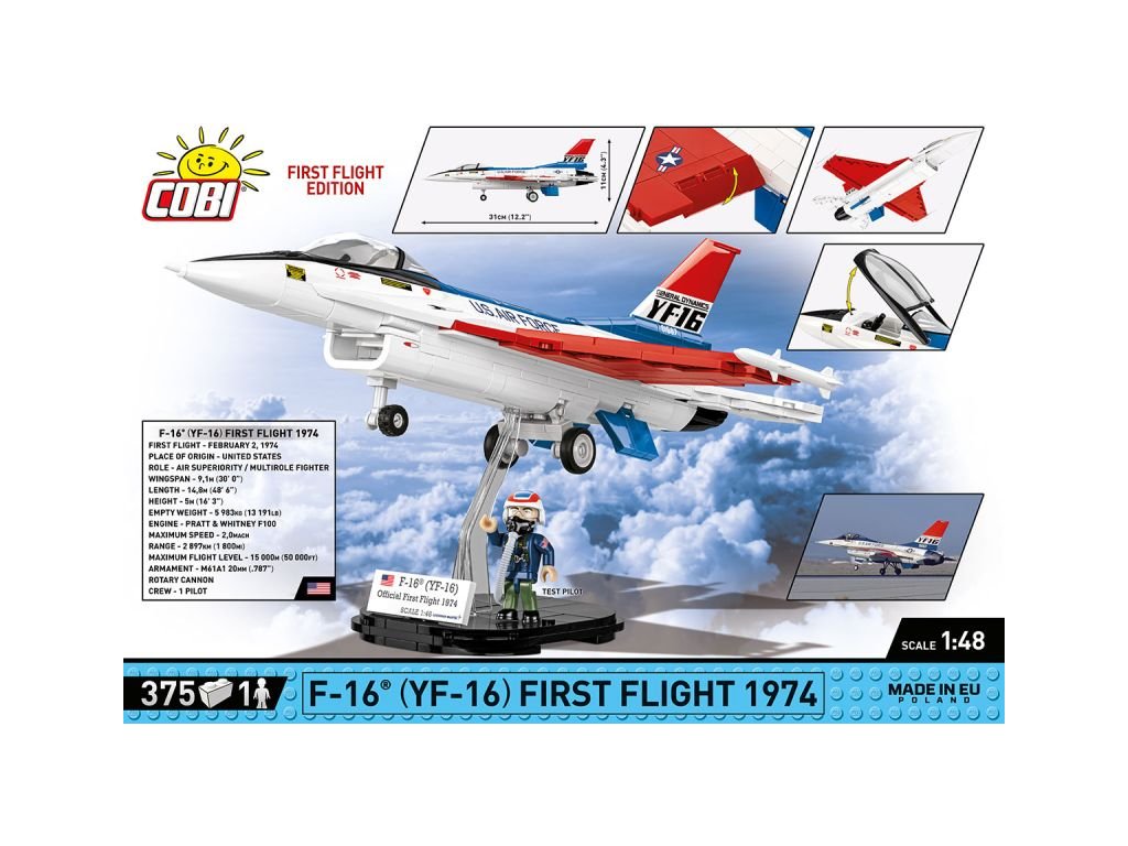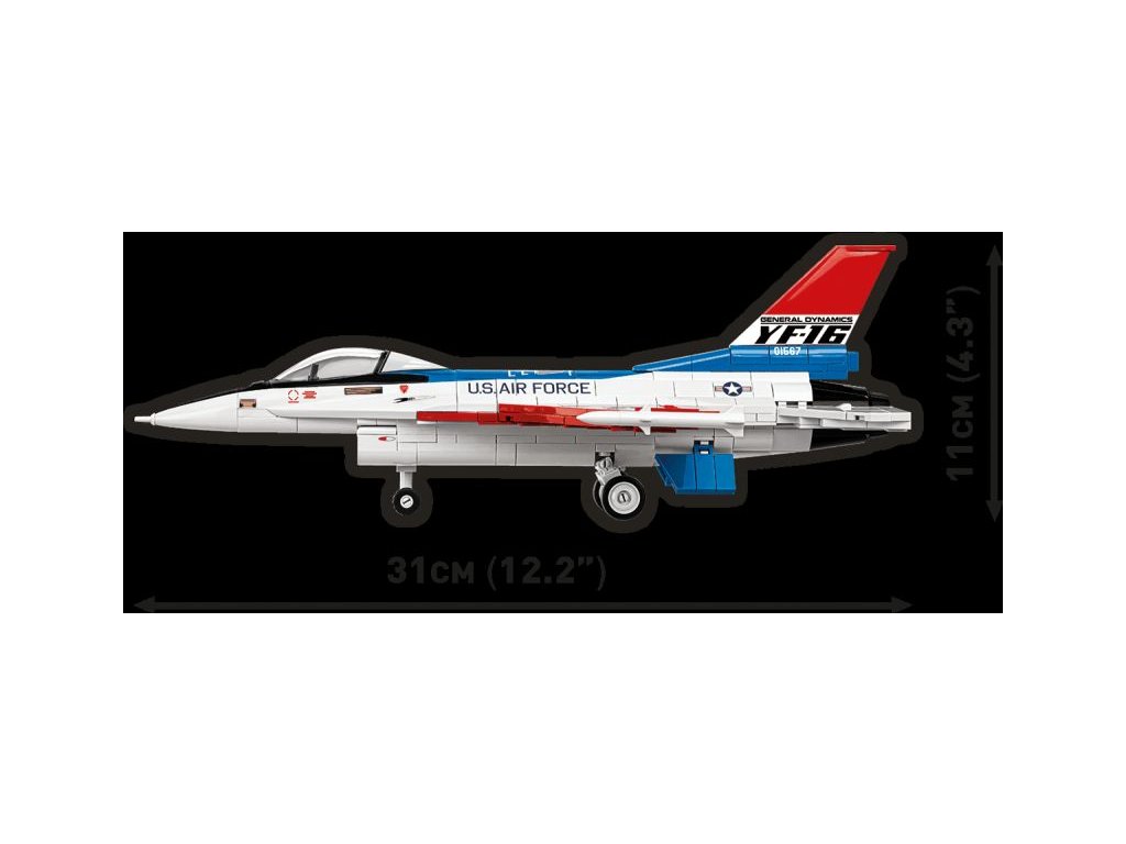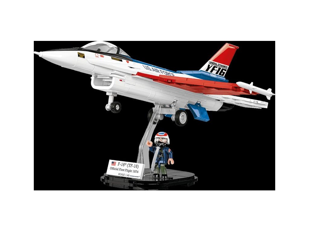 Az amerikai többcélú vadászrepülőgép első működő prototípusának modellje, YF‑16, ma ismert mint F‑16, az Egyesült Államok Légierejének színeiben. Az összeszerelt modell dönthető vezérsíkokkal és nyitható pilótafülke fedéllel rendelkezik a tesztpilóta Phil Oestricher figurájának. A modell saját futóművén vagy a mellékelt állványon állhat, leírással. Az építőkészlet a Lockheed Martin hivatalos engedélyével készült.