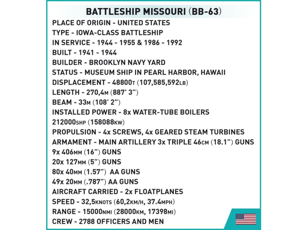 COBI Építőkészlet HC WW2 Csatahajó Missouri (BB-63) (COBI-4837)