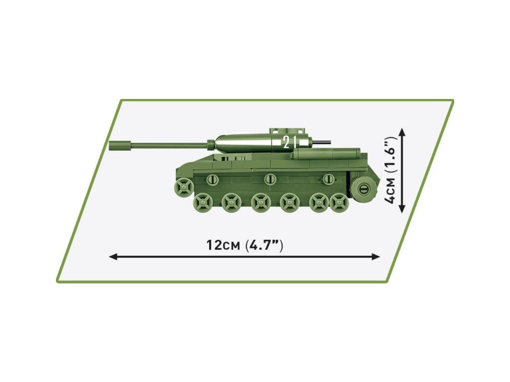 A COBI kockákból készült mini modell 1:72 méretarányban készült, és 130 kockából áll. Összeállítás után 12 cm hosszú. A kompakt méretek ellenére a modell megőrzi történelmi inspirációjának minden fontos elemét! A jármű oldalán nyomtatott jelzések és jellegzetes fehér csíkok találhatók, amelyek a „Berlini hadműveletben” való részvételt jelzik. A tank tornya mozgatható és forgatható. Az ágyúcső is mozog felfelé és lefelé.