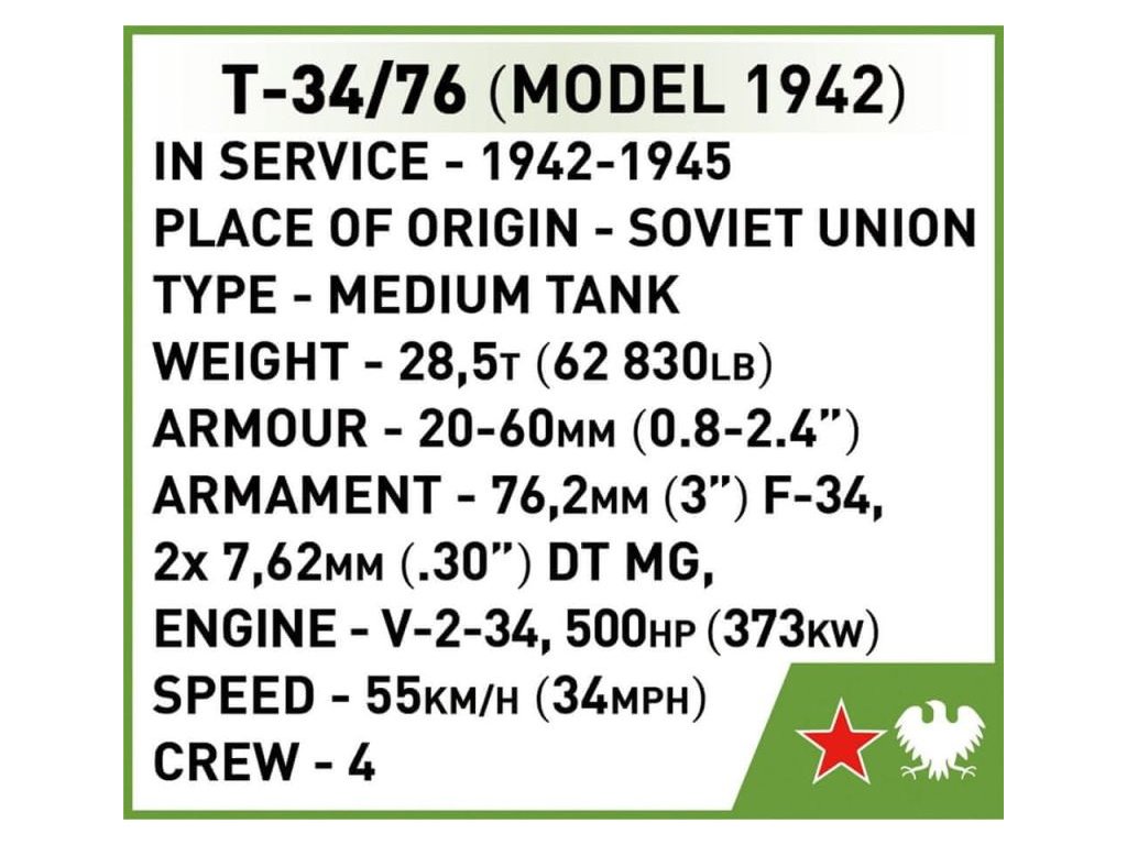 A T-34/76 egy alap közepes tank, amely 1941-től a szovjet páncélos erők támasza volt. Nagy egyszerűségének köszönhetően nagyon könnyen gyártható, használható és javítható volt. Nagyon jó páncélzattal, fegyverekkel és mozgékonysággal rendelkezett. Sok történész úgy véli, hogy a T-34 tank jelentősen hozzájárult a szövetséges országok győzelméhez a második világháborúban.