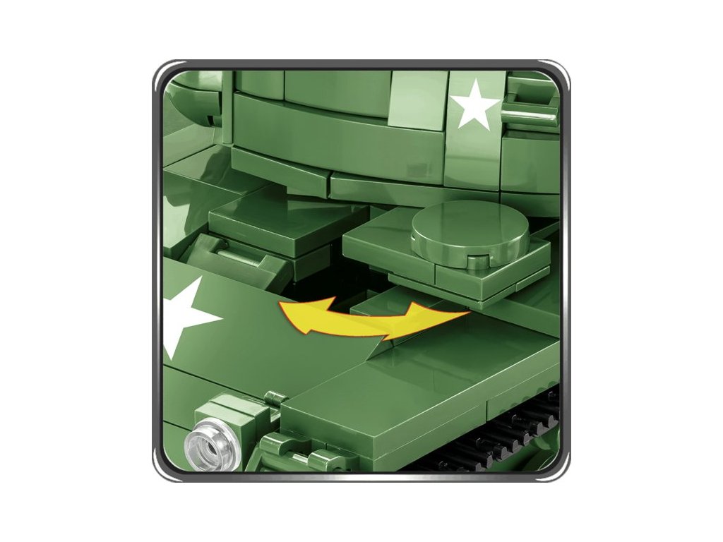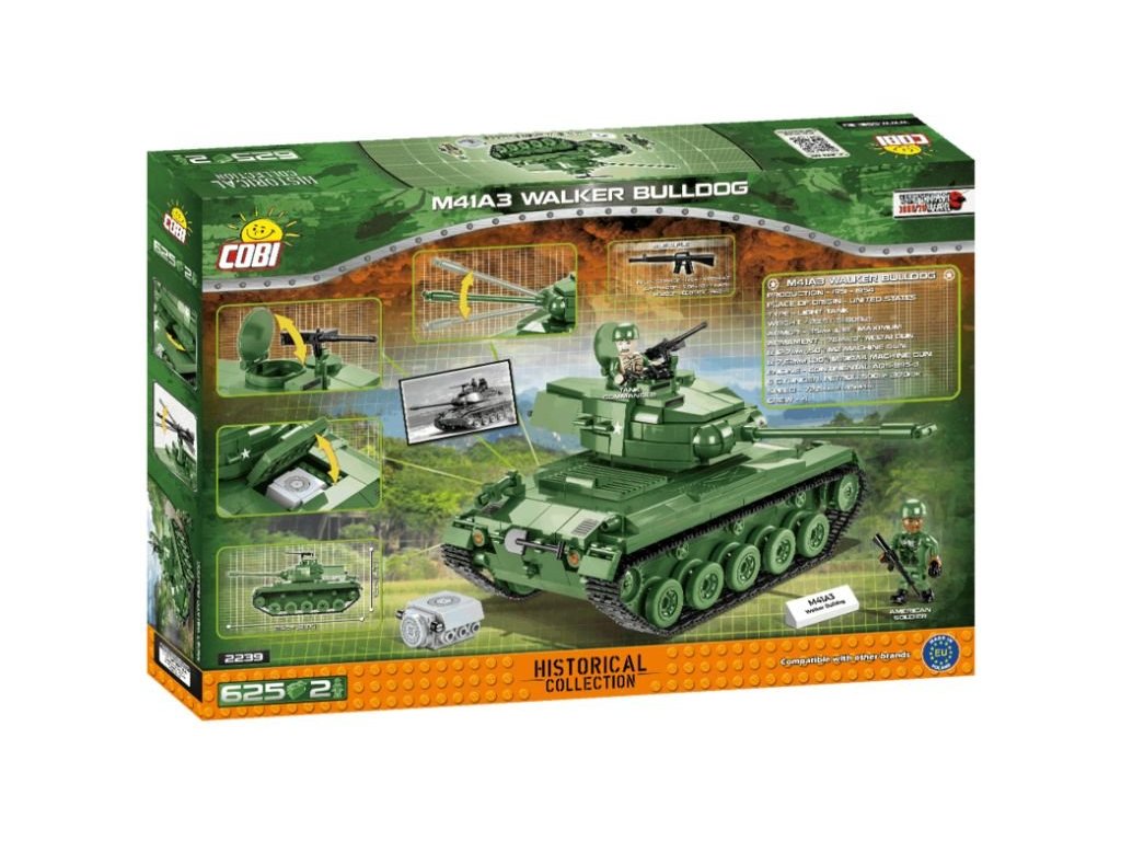A több mint 625 COBI építőkockából álló készletből megépítheti az amerikai könnyű tank M41A3 Walker Bulldogot. A modell tartalmaz minőségi nyomtatással ellátott elemeket, amelyek intenzív használat során sem kopnak el. Az építmény tökéletesen tükrözi történelmi elődjének eredeti formáit. Mozgatható kerekek és lánctalp, nyitható fedelek, hozzáférés a téglamotorhoz, mozgatható torony és nagyon jellegzetes cső, valamint két amerikai katona figurája kiegészítőkkel garantálják a készlet birtoklásának elégedettségét! Az egész készletet egy névtábla egészíti ki a jármű nevével.