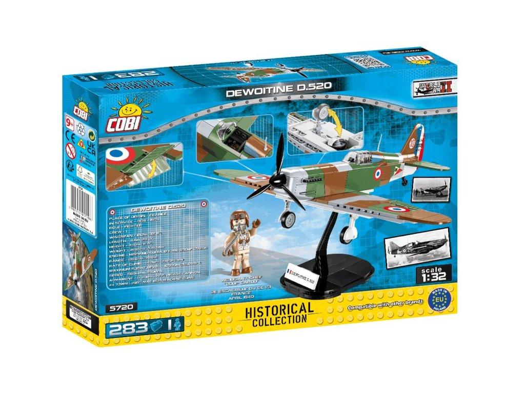A 283 COBI építőkockával hűen reprodukált Dewoitine D.520 vadászgépet építhet meg 1:32 méretarányban. A történelmi álcázás és jelölés magas minőségű nyomatokkal lett reprodukálva, amelyek intenzív használat során sem kopnak el. A modell mozgatható elemekkel van felszerelve, mint például a légcsavar, szárnyak, nyitható kabin és behajtható kerekek. A készlet tartalmaz egy francia pilóta figurát oxigénmaszkkal. Az egész készletet egy fekete állvány egészíti ki, amelyen a modell neve szerepel.