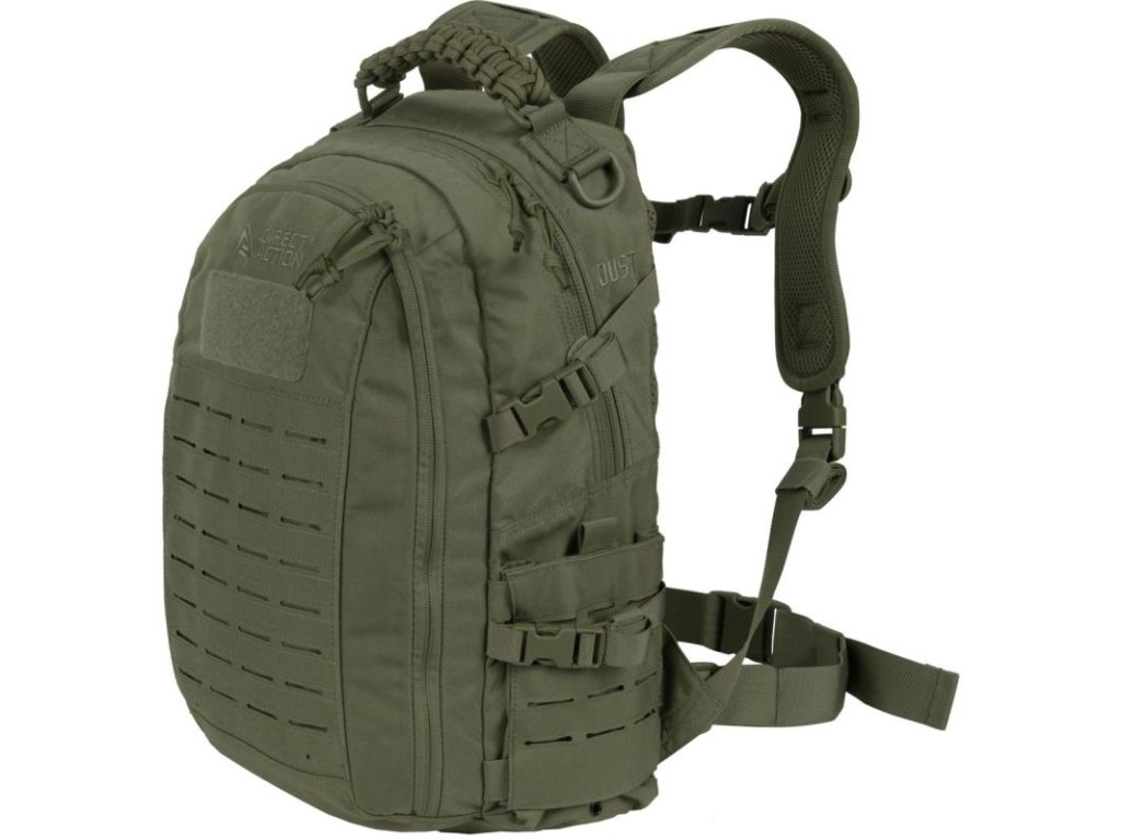 Dust je najmenší z rady batohov Direct Action a s objemom 20 litrov a je vhodný najmä ako EDC (Every Day Carry) alebo pre základné taktické činnosti. Batoh je koncipovaný ako dvojkomorový. Prvé, hlavné a najväčšie vrecko má polstrovanú priehradku pre hydratačný vak v chrbtovej časti batohu a môže byť využité aj pre uloženie rádiostanice alebo notebooku o veľkosti 15" a naviac má ešte malú sieťovanú kapsičku. Druhé menšie vrecko obsahuje praktický organizér napríklad na písacie potreby, dole je sieťovaná vrecko uzatvárané suchým zipsom a naproti je priehľadná kapsa uzatváraná zipsom. Vrecká na bokoch batohu sú vhodné na nosenie malých predmetov - tu nastala malá zmena oproti predchádzajúcej generácii - zips bol odstránený a nahradený elastickým pásom, ktorý daný priestor rozšíril a umožňuje tak uskladniť aj rozmernejšie veci ako napr. štandardnú US poľnú fľašu.