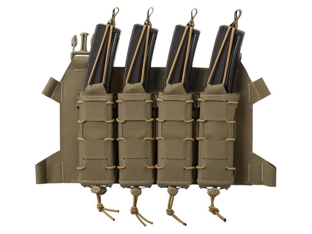 Extrémne ľahká skeletonizovaná chlopňa určená na nosenie štyroch zásobníkov SMG vrátane MP5 alebo Scorpion Evo. Pokrytá laserom vyrezávaným modulárnym systémom kompatibilným s MOLLE/PALS. Chlopňa bude dokonale fungovať s nosičom plátov BEARCAT® a systémom SPITFIRE®. Zásobníky sú zhora zaistené bungee šnúrkami s pútkami Hypalon®. Chlopňa sa k nosiču platní pripevňuje pomocou dvoch bočných praciek. Pomocou prídavného rozhrania sa dá premeniť na kompaktnú hrudnú súpravu.