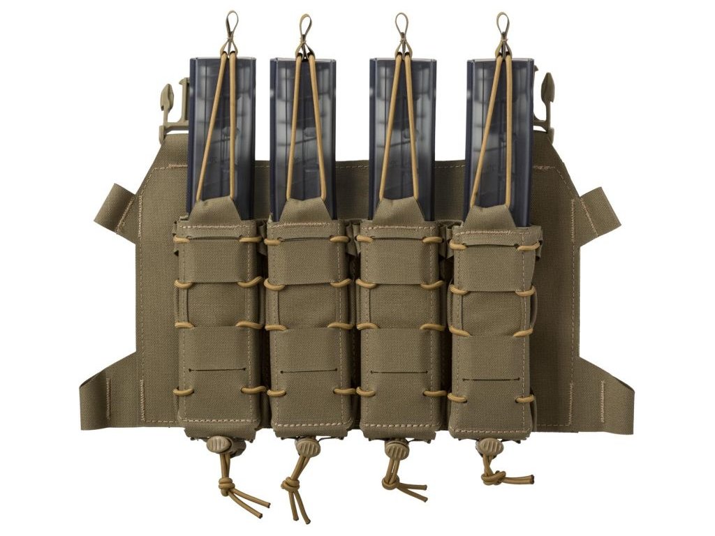 Extrémne ľahká skeletonizovaná chlopňa určená na nosenie štyroch zásobníkov SMG vrátane MP5 alebo Scorpion Evo. Pokrytá laserom vyrezávaným modulárnym systémom kompatibilným s MOLLE/PALS. Chlopňa bude dokonale fungovať s nosičom plátov BEARCAT® a systémom SPITFIRE®. Zásobníky sú zhora zaistené bungee šnúrkami s pútkami Hypalon®. Chlopňa sa k nosiču platní pripevňuje pomocou dvoch bočných praciek. Pomocou prídavného rozhrania sa dá premeniť na kompaktnú hrudnú súpravu.