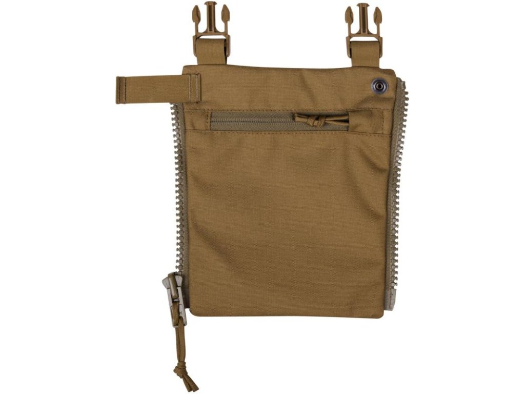 Panel je vyrobený z odolného materiálu Cordura® 500D, čo zaručuje vysokú trvanlivosť a odolnosť proti opotrebovaniu. Panel tiež obsahuje ploché zipsovacie vrecko, ktoré je vhodné pre ukladanie máp, fotografií terčov a ďalších plochých predmetov. Vďaka top sponám je možné rýchlo a jednoducho prepojiť ramenné popruhy do pohodlnejšej polohy.