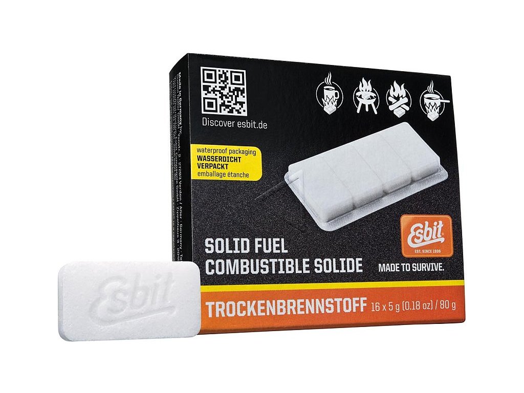 Az Esbit a szilárd tüzelőanyagok gyártásának világelsője. Az Esbit szilárd tüzelőanyag tablettáival a hátizsákjában mindig biztos lehet benne, hogy ételei és italai elérik a kívánt hőmérsékletet. A szilárd tüzelőanyag megbízható tűzforrás, amely kevés tárolóhelyet foglal. Magas tengerszint feletti magasságokban és fagypont alatti hőmérsékleten is használható.
