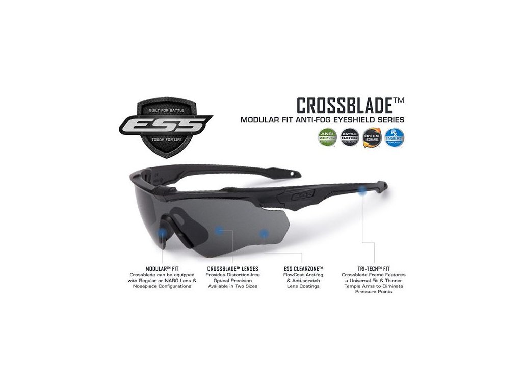 Az ESS Crossblade új sorozat szemüvegei. Ez a sorozat büszkélkedhet a ClearZone Anti-fog technológiával, amely egy fejlett technológia a lencsék párásodásának megakadályozására, továbbá 2 különböző méretet (standard és NARO) kínál a lencsék és orrnyergek számára, ami lehetővé teszi, hogy személyre szabott szemüveget állítson össze.