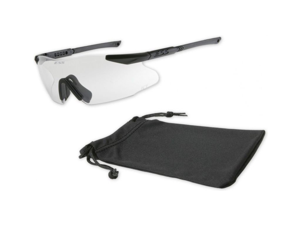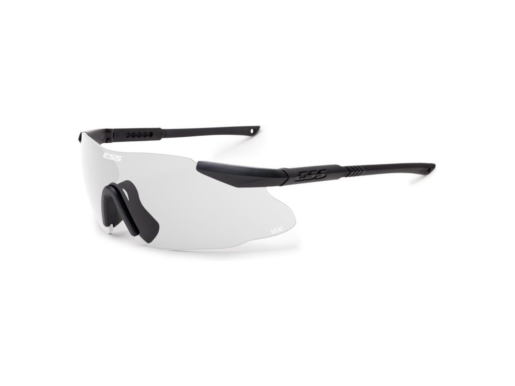 Univerzális védőszemüveg szállítótáskával. Az ESS ICE-1 védőszemüveg kivételes szemvédelmet nyújt minden katonának, rendőrnek, bevetési egység tagjának, mentősnek vagy sportolónak, köszönhetően a ballisztikus szemüvegek egyedülálló tulajdonságainak. A szemüveg modern dizájnnal rendelkezik, és megfelelően védett a sérülésekkel szemben, mint például a keretek vagy lencsék karcolódása. Az ICE-1 kiváló minőséget kínál bármilyen tevékenységhez, ahol magas szintű látásvédelem szükséges különböző fényviszonyok között. Az ICE az Interchangeable Component Eyeshield rövidítése. Az ICE-1 dizájn korlátlan látómezőt biztosít. Az állítható, formázható szárak kényelmet biztosítanak bármely felhasználó számára. A szemüveghez megvásárolható az úgynevezett Rx Insert, amely dioptriás lencsékkel ellátott betét, és a szokásos optikai üzletek hálózatában telepíthető. Az ESS P-2 Rx Carrier dioptriás lencse betétek különböző fényviszonyokhoz való használatra készültek. A Tough Zone-nak köszönhetően a lencsék karcálló bevonattal vannak ellátva. A szemüveg szárainak távolsága egymástól 14 cm. Az ICE szemüveg lencséi ballisztikus ellenállással rendelkeznek, amely megfelel a NATO katonai követelményeinek. Ballisztikus ellenállás 0,15-ös kaliberre a MIL-PRF-31013 szabvány szerint. A szemüveg ellenáll a közvetlen lövésnek sörétes puskából 10 m távolságból. Az ESS szemüvegek csak a napfényt nyelik el, ezért jó a láthatóság sötét lencsékkel árnyékban. Lencsék: rendkívül tartós, 2,4 mm vastag polikarbonát lencsék. Az ESS Modular Technology-nak köszönhetően a cserélhető lencsék nem költségesek és könnyen cserélhetők. Minden használt lencse 100% védelmet nyújt az UVA / UVB sugárzás ellen, és 100% átláthatóságot biztosít a látómező torzítása nélkül. Keret nélküli ESS Vice Rx Carrier kompatibilis az ESS Profile NVG szemüvegtípussal, az ESS Vice Rx Carrier szintén kompatibilis az ESS Advancer V-12 szemüvegtípussal. Mindkét betéttípus az ICE szemüveg tartó részébe kerül beépítésre, a ballisztikus védelemmel ellátott lencsék által védett térbe