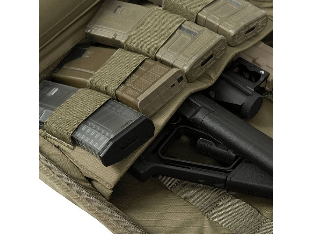 A minőségi SBR hátizsák párnázott tokot kínál egy hosszú fegyver számára, akár kolimátorral vagy optikával. A hátizsák robusztus anyagból készült, és lehetővé teszi a belső tér igény szerinti testreszabását. A fegyver a tokban állítható tartókkal van rögzítve. A hátizsák két erős fogantyúval és állítható vállpánttal rendelkezik, ami kényelmes viselést biztosít.