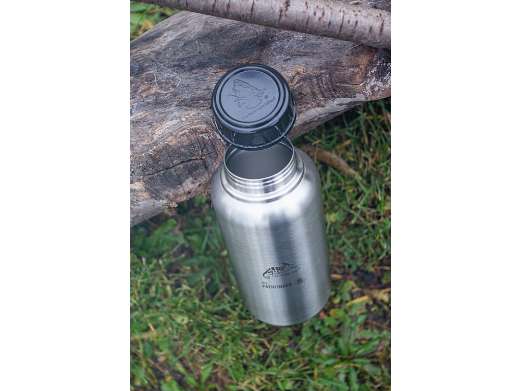 A PATHFINDER 32 oz. (0,95 l) rozsdamentes acél palack egy folyadéktároló, amelyet nehéz körülmények közötti használatra terveztek. Kapacitása megfelel a szabványos folyadékmennyiségnek, amelyet egy víztisztító tabletta képes megtisztítani. Ez lehetővé teszi, hogy a vizet gyorsan előkészítse fogyasztásra közvetlenül az első mechanikus szűrés után. A palack széles nyaka lehetővé teszi a víz felszívását nagyon sekély patakokból, és a szilikon tömítés megakadályozza a víz kiömlését szállítás közben.