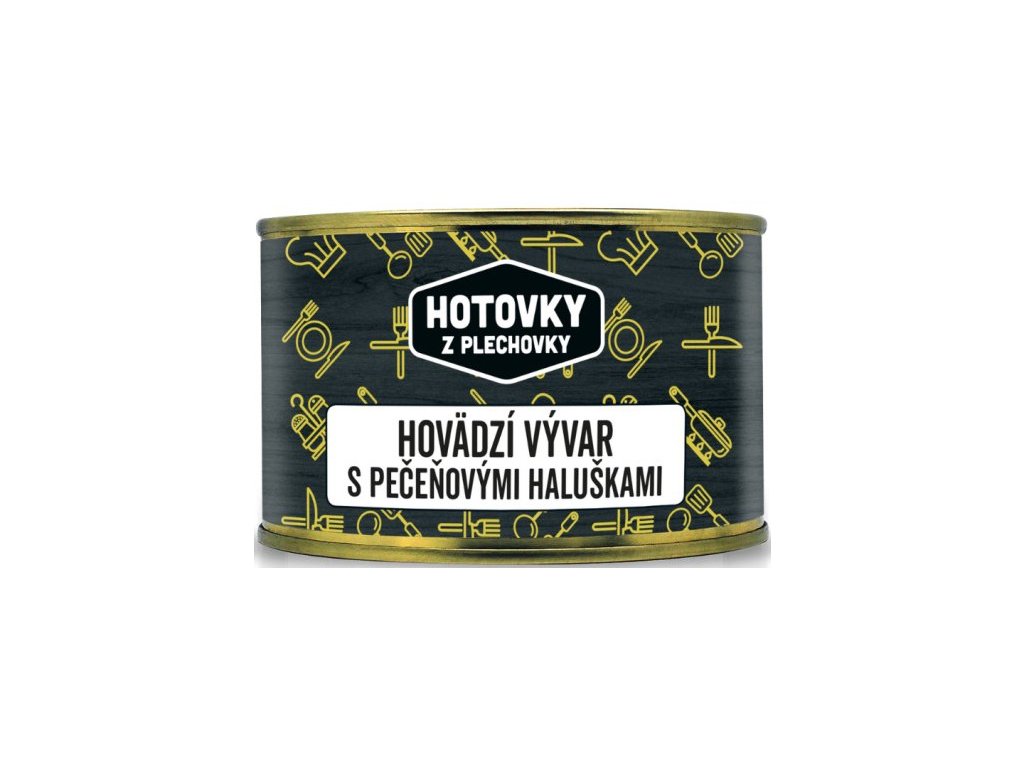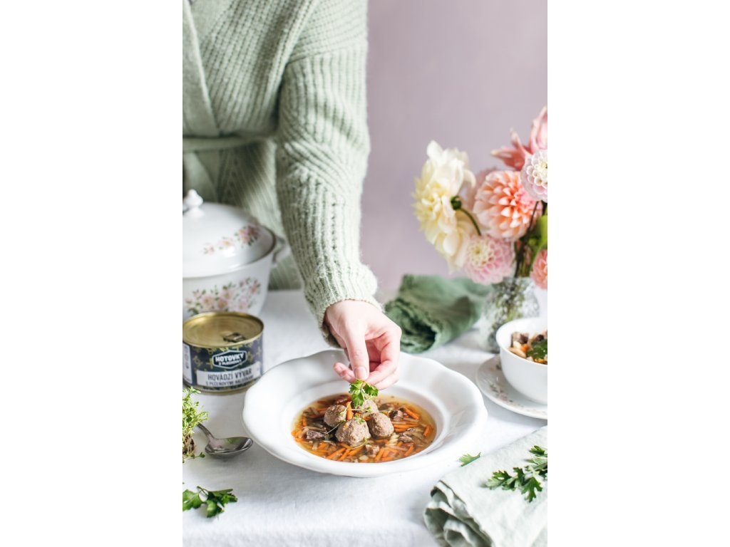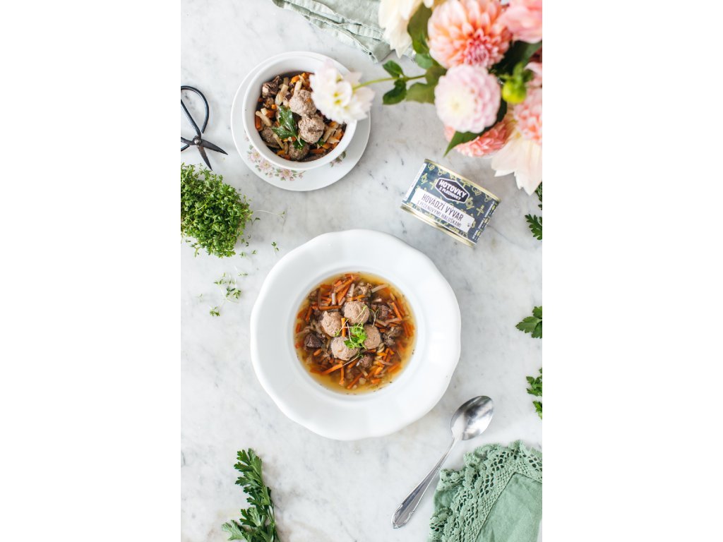 HOTOVKY Z PLECHOVKY Marhahúsleves májgaluskával 400ml