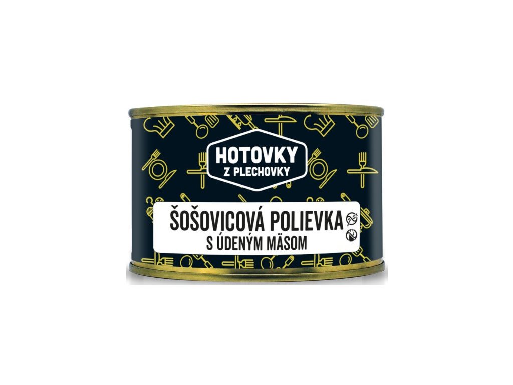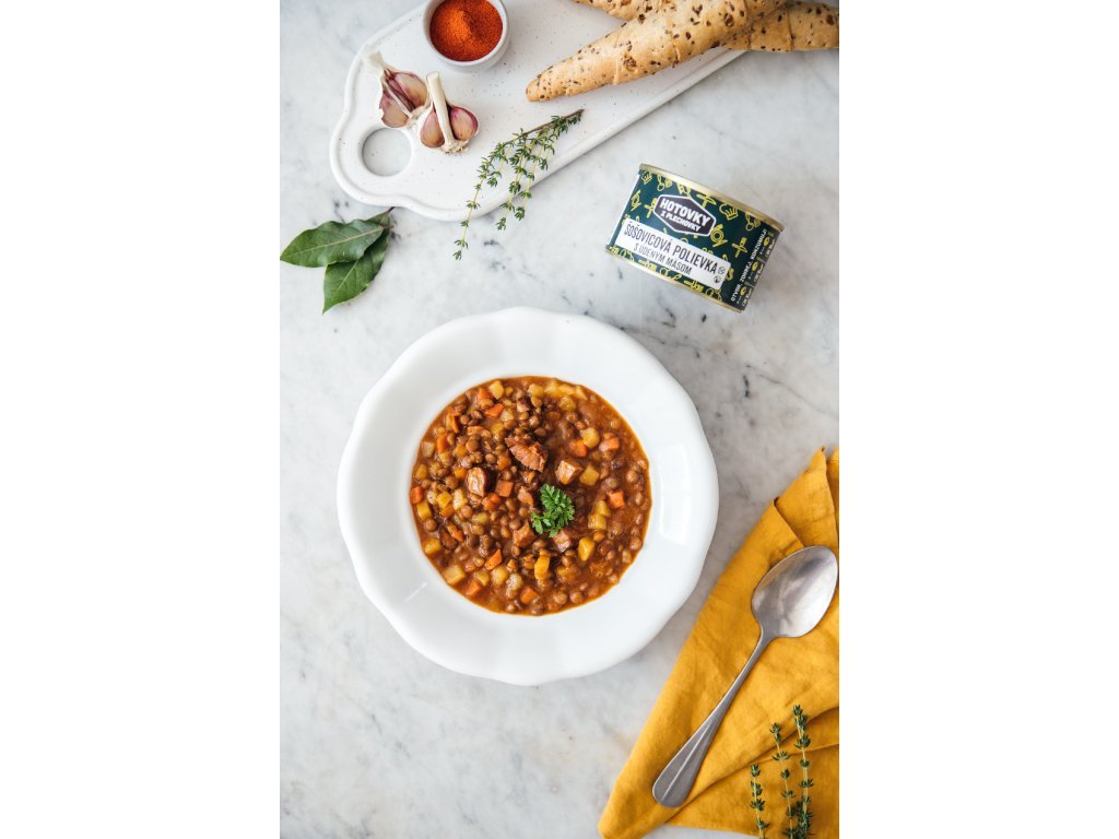 HOTOVKY Z PLECHOVKY Lencseleves füstölt hússal 400ml