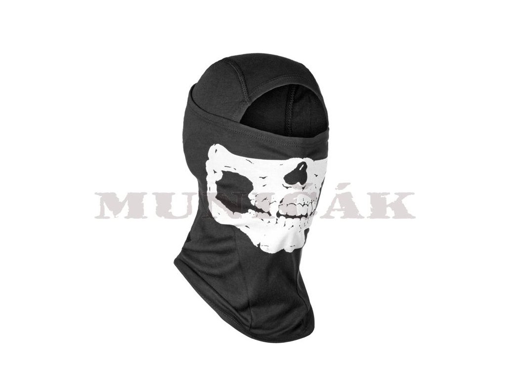Védő, egylyukú símaszk egész éves használatra tervezve. A símaszk arcrészén emberi koponya nyomtatás található.