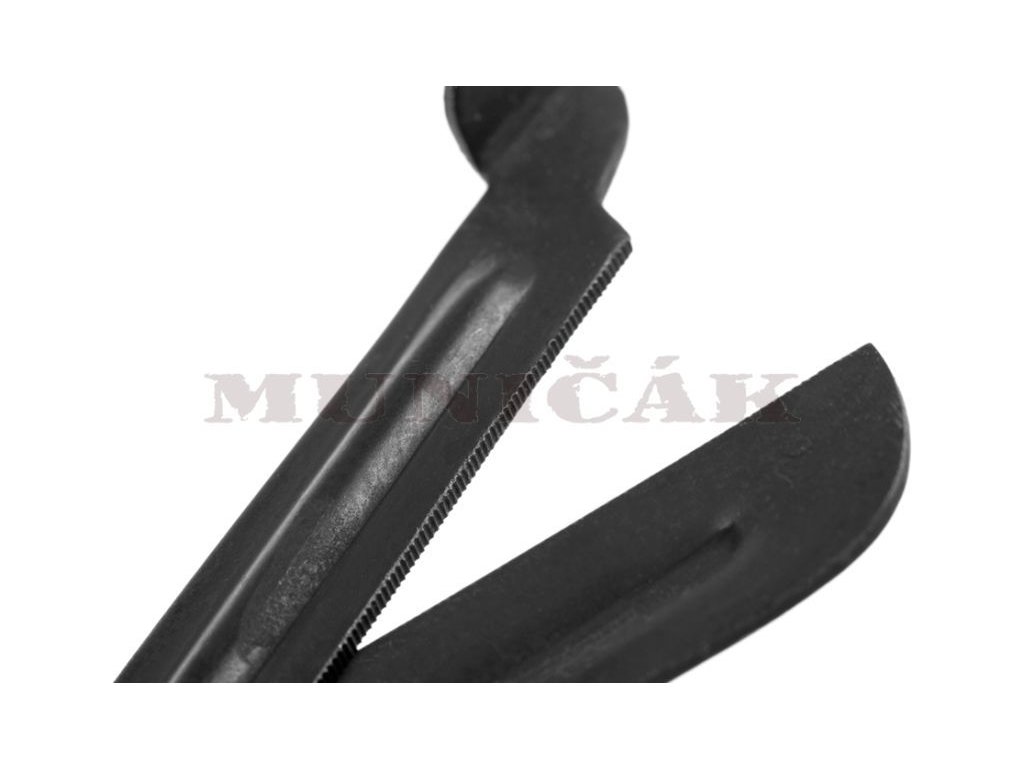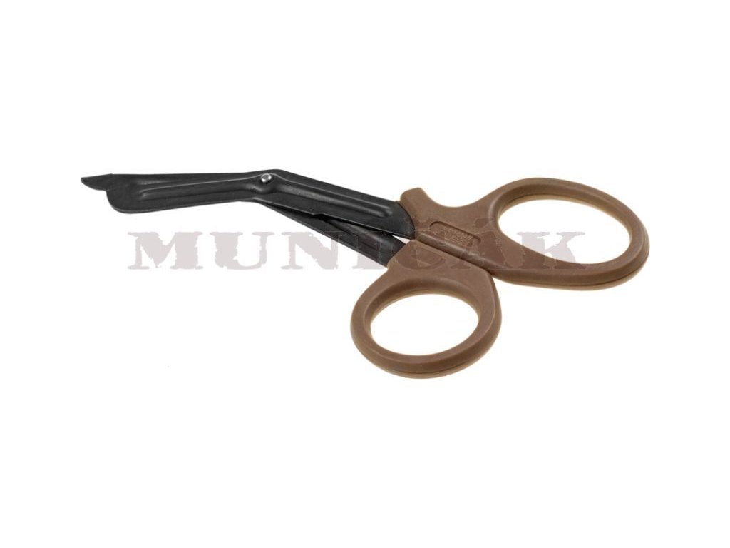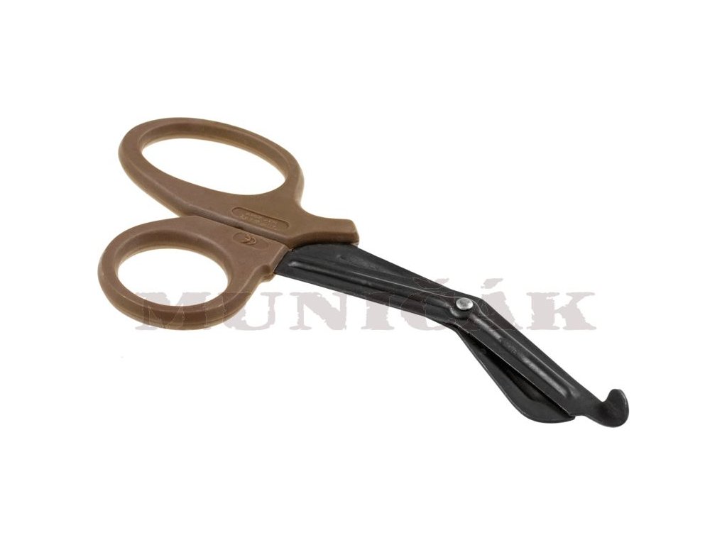 Hajlított orvosi olló tompa hegyekkel és műanyag fogantyúval.