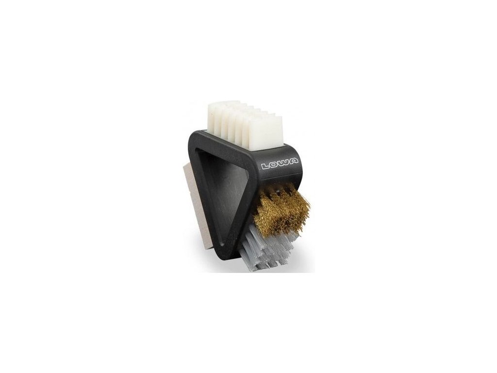 A Lowa háromoldalú kefe ideális eszköz a velúr és nubuk cipők optimális matt megjelenésének megőrzésére. Négy különböző funkciójú részből áll: