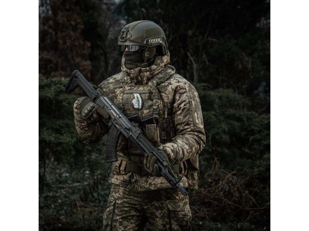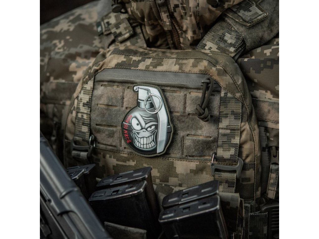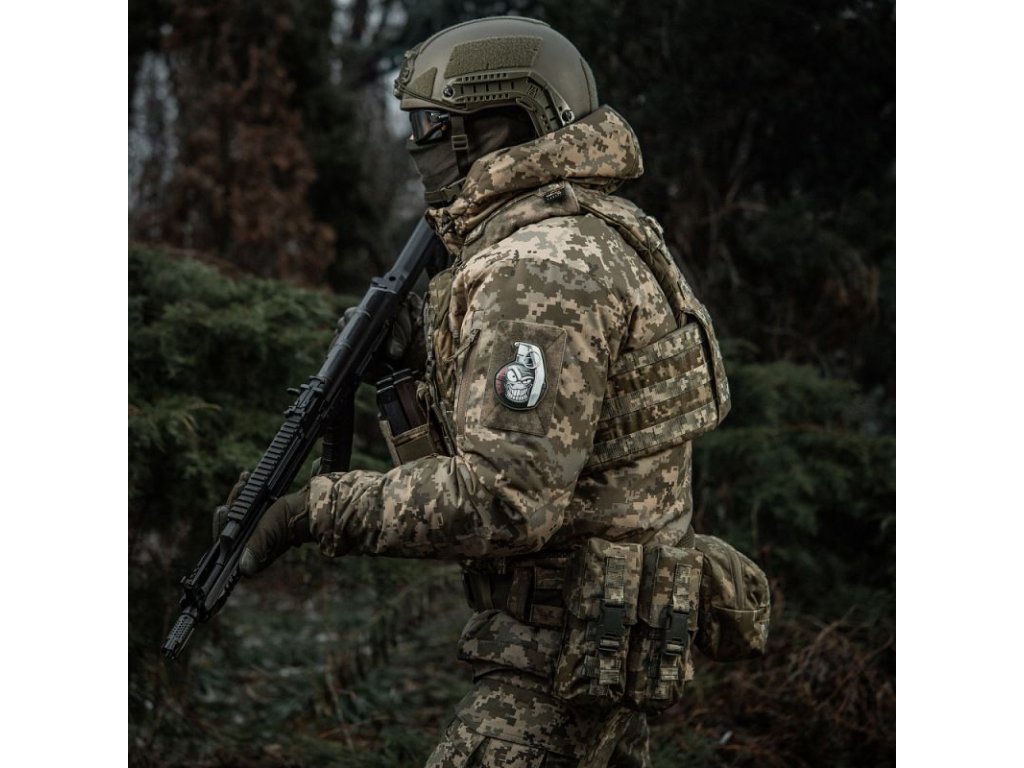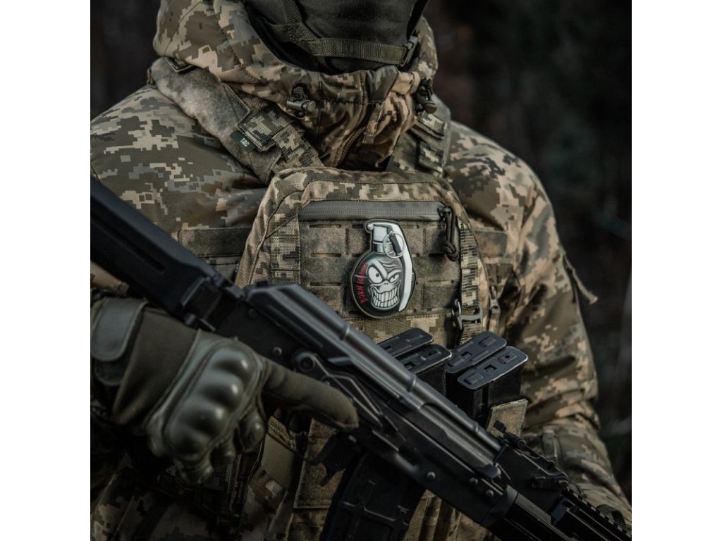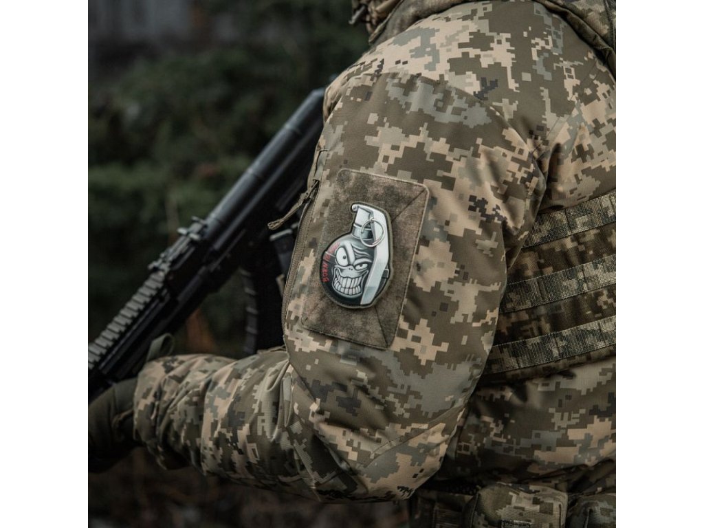Háromdimenziós felvarró, PVC-ből készült. Tépőzárral van ellátva, amely lehetővé teszi az egyszerű rögzítést különböző felszerelési részekhez vagy ruházathoz.