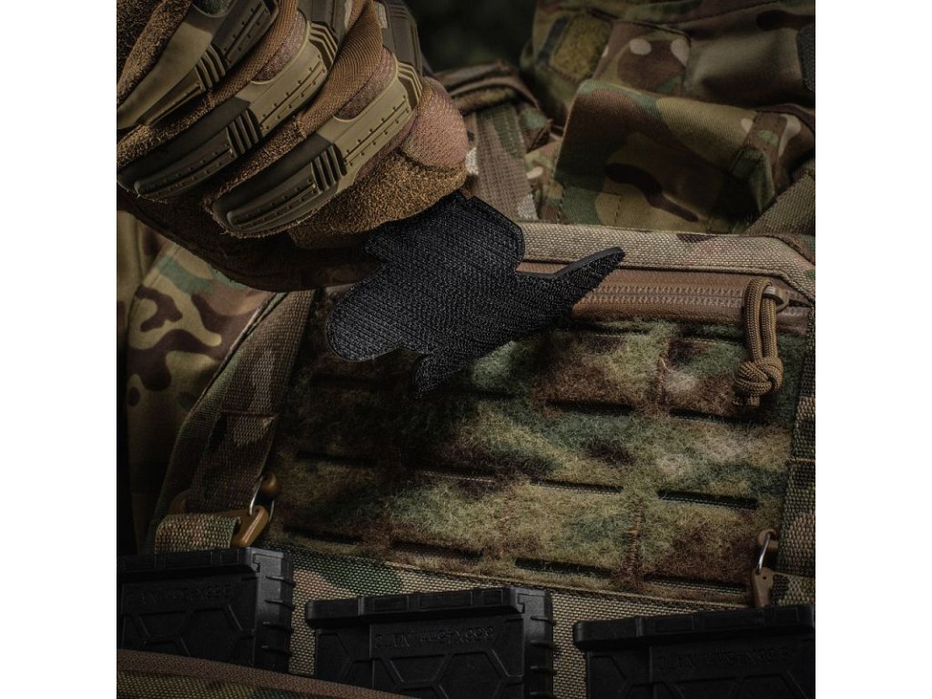 Háromdimenziós felvarró, PVC-ből készült. Tépőzárral van ellátva, amely lehetővé teszi az egyszerű rögzítést különböző felszerelési részekhez vagy ruházathoz.