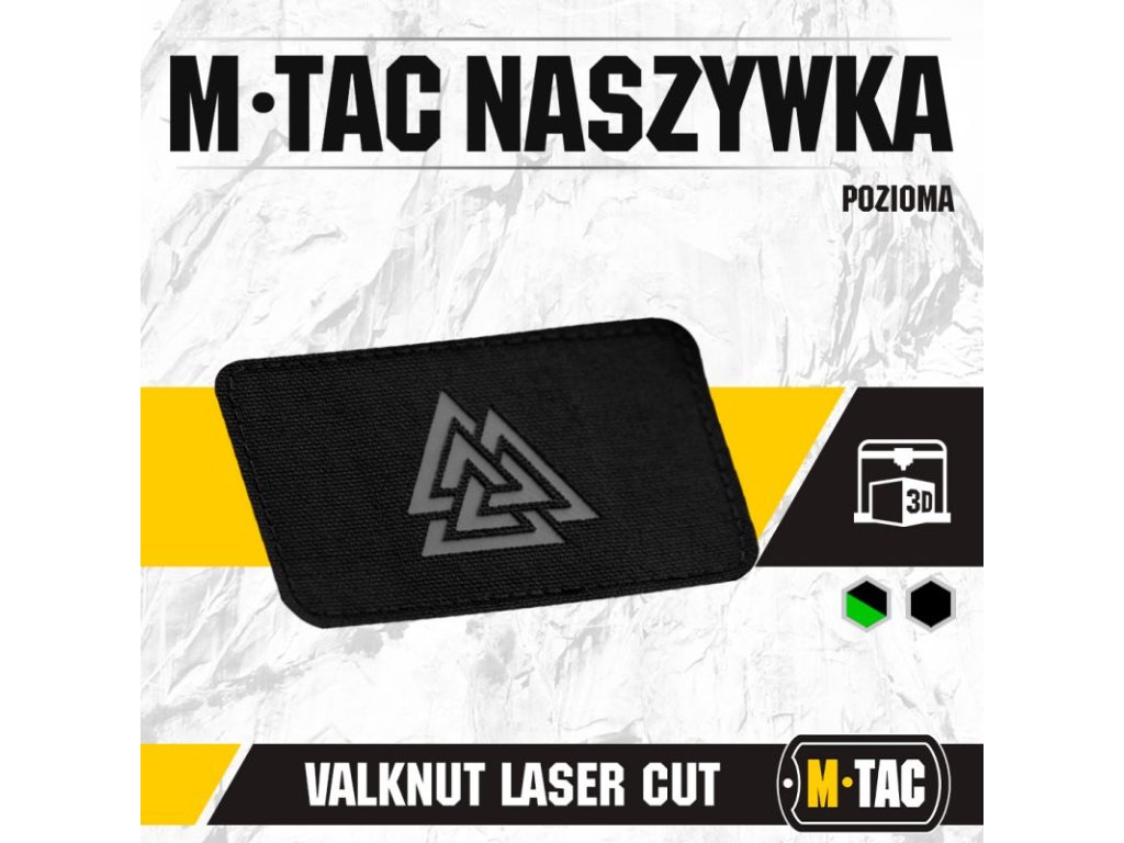 M-Tac patch Valknut - mágikus szimbólum, amely három összekapcsolt háromszögből áll. A Valknut Odin szimbóluma és a hozzá kapcsolódó mágia, a világok közötti átjárók (hidak) szimbóluma. A Valknut minden háromszöge három függőleges világnak felel meg: az egyik Asgard vagy Alfheim (felső világ), a másik Midgard (középső világ), a harmadik Pokol vagy Svartalfheim (alsó világ).