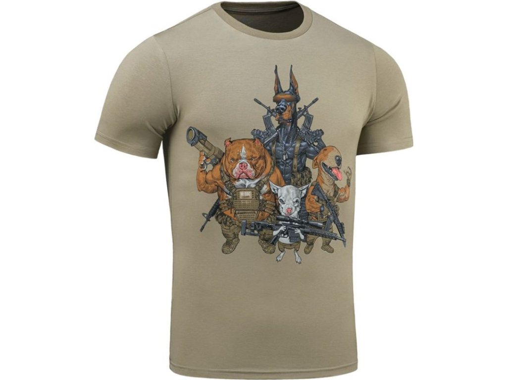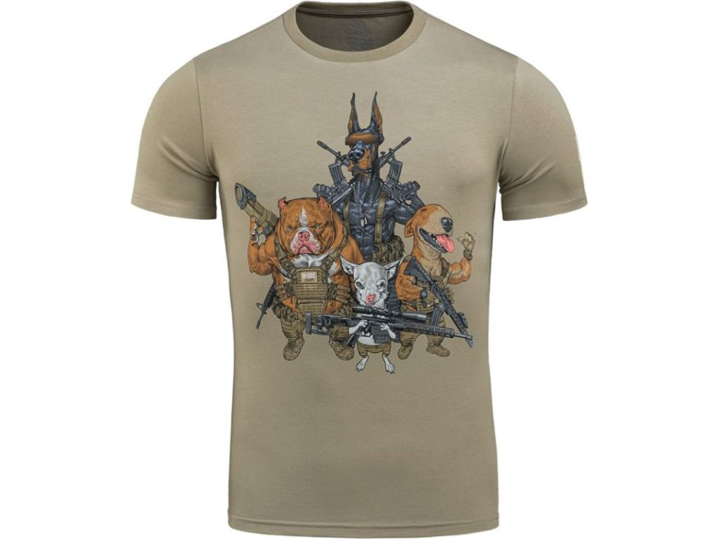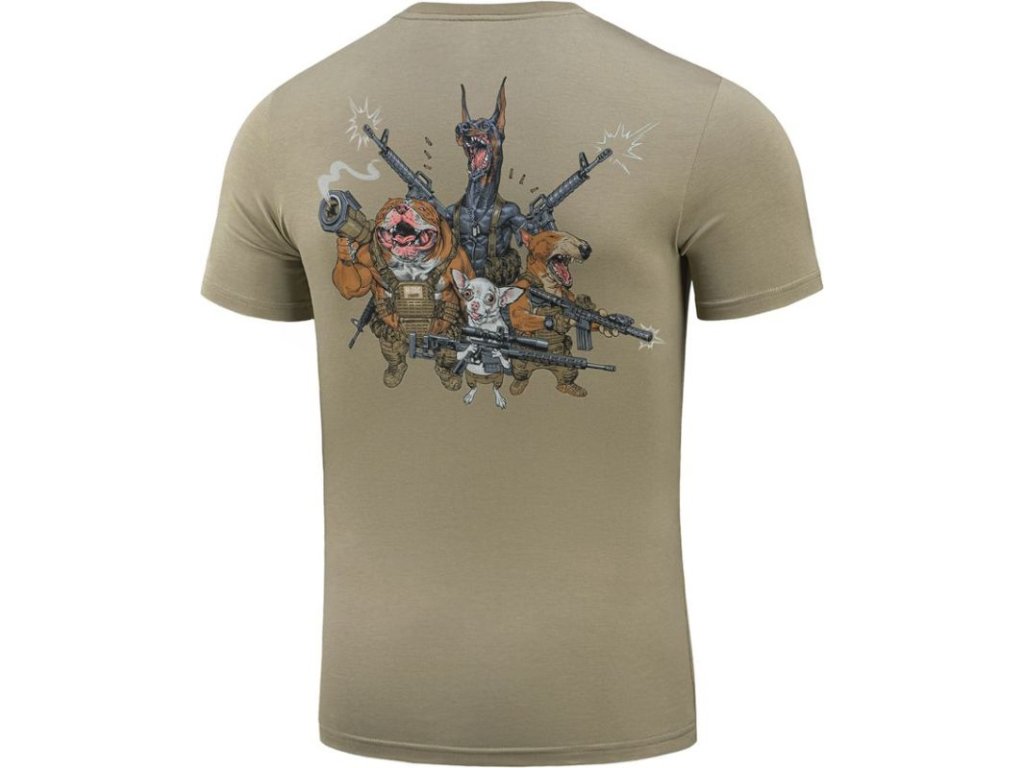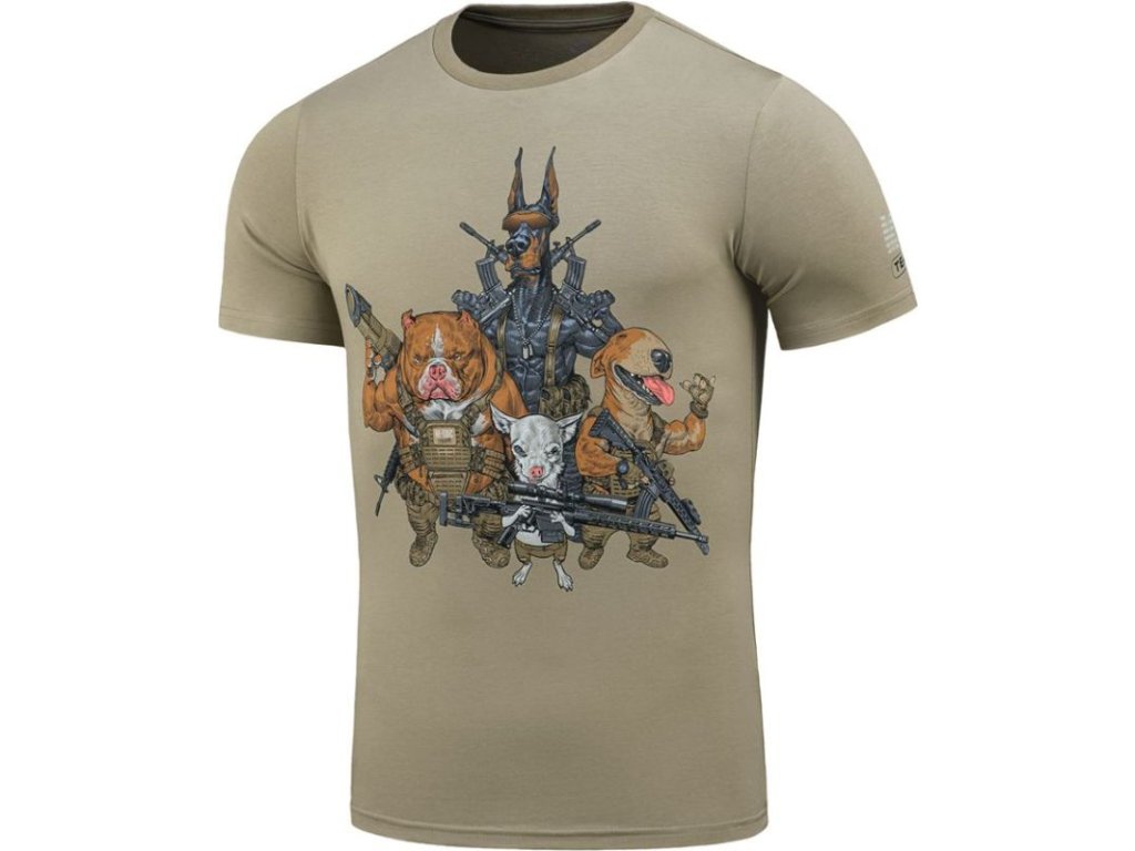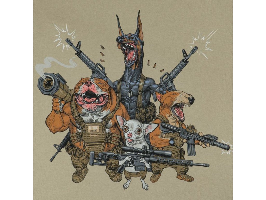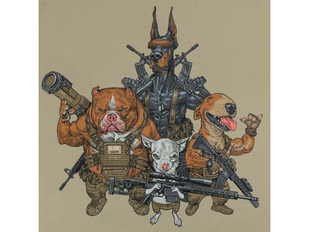 M-TAC Rex Team egy eredeti és kényelmes taktikai póló humoros nyomtatással, amely minden bátor lövésznek és csapatjátékosnak szól. A póló elején egy lövész "csapat" látható – négy elszánt harcos, akiknek arckifejezése és testtartása a barátság és a kölcsönös támogatás erejét szimbolizálja, amely erősebb, mint bármilyen fegyver. A hátsó oldal ugyanazt a "vad csapatot" mutatja akció közben, ahol a legnehezebb kihívás is kalanddá válik, ha megbízható társak vannak az oldaladon.
