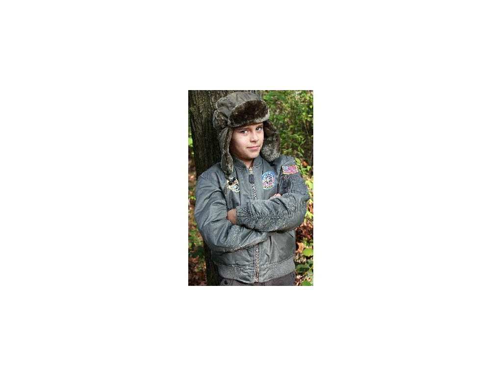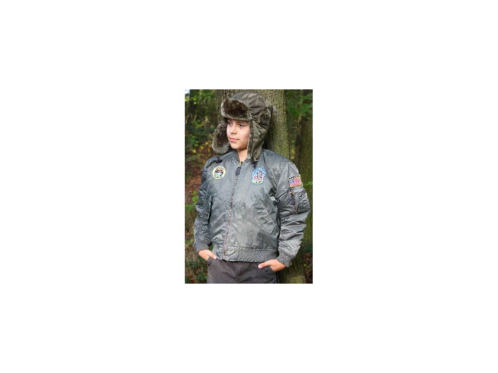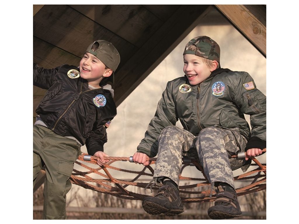 A gyerekek számára készült US MA1 repülős dzseki, más néven "bomber", szélálló és részben vízálló. A dzseki nagy fém cipzárral záródik, két kézmelegítő zsebbel, amelyek patentos fedéllel vannak ellátva, két belső zsebbel, a bal ujjon cipzáras zsebbel, a gallér, az ujjak és a derék rugalmas kötött anyagból készült, felvarrt felvarrókkal.