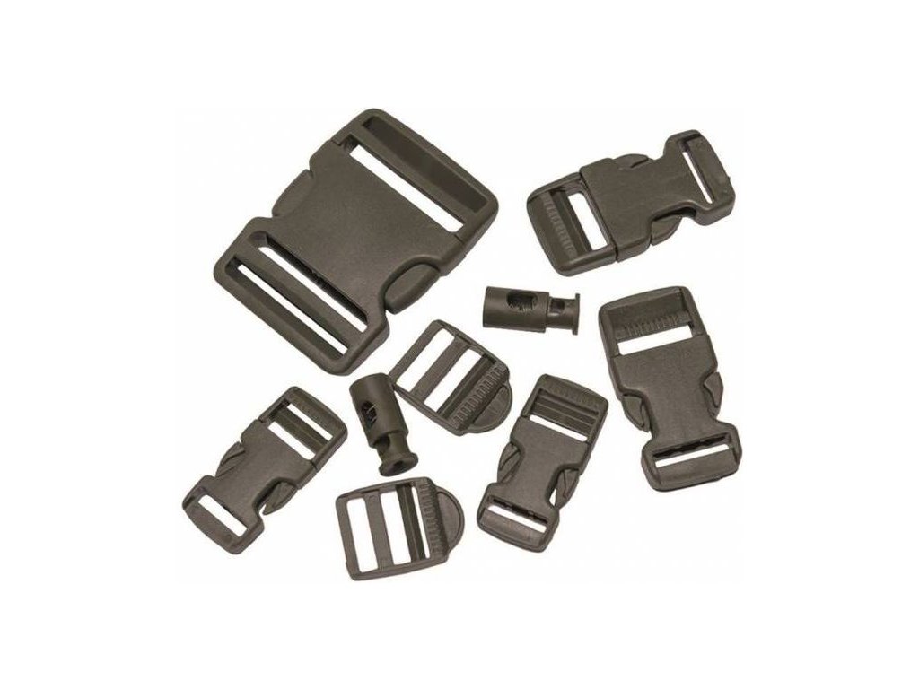 A Mil-Tec márkájú csatok 9 darabos készlete, a csatok 100% polioximetilénből készültek.