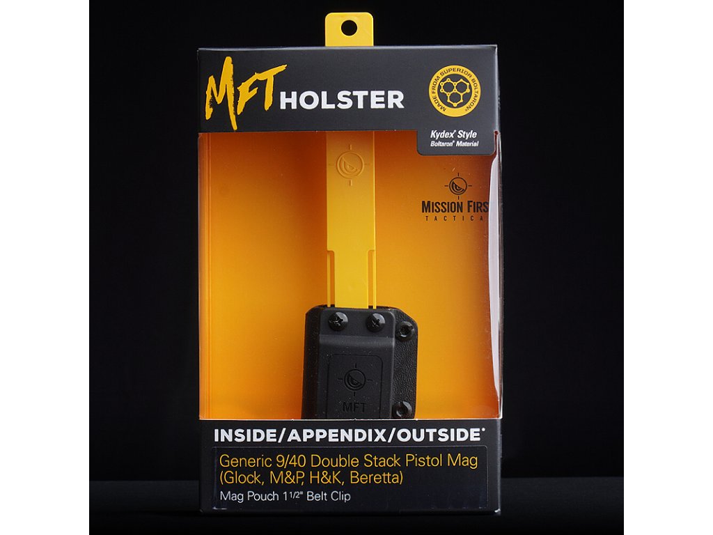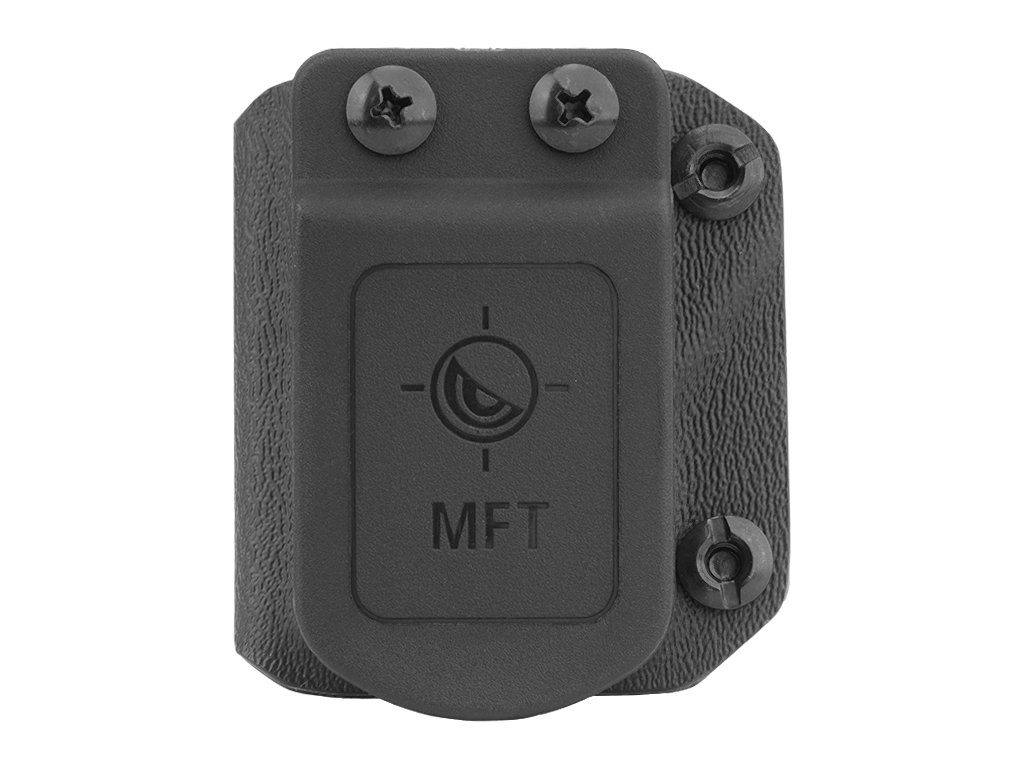 A Mission First Tactical (MFT) nyitott pisztolytár tokja. A tok egyes pisztolytárak viselésére szolgál, mint például a Glock, M&P, H&K és Beretta.