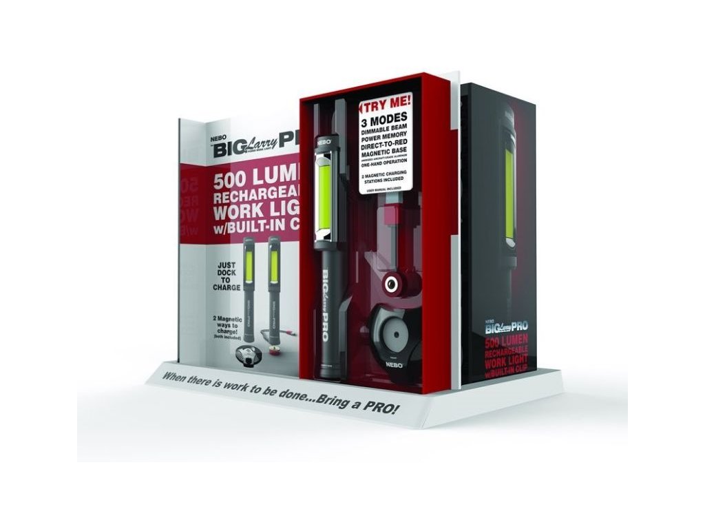 A BIG Larry® PRO egy professzionális, nagy teljesítményű C - O - B munkalámpa 500 lumen fényerővel és piros figyelmeztető fénnyel.