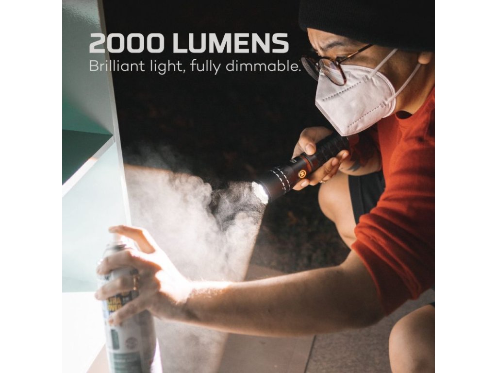 Újratölthető, vízálló (IP67) és rendkívül sokoldalú SLYDE KING 2K zseblámpa 2 lumenes zseblámpával rendelkezik, 4-szeres nagyítással és 500 lumenes C-O-B-val. Minden világítási mód fényerőszabályozható programozható memóriával.