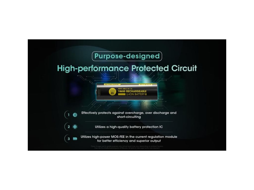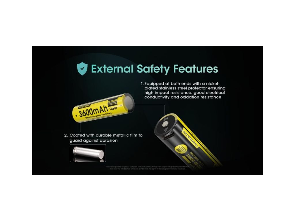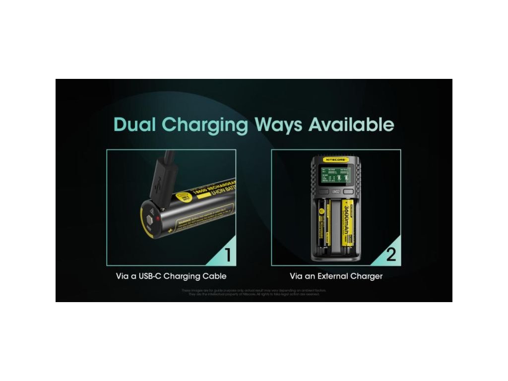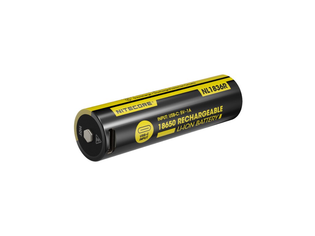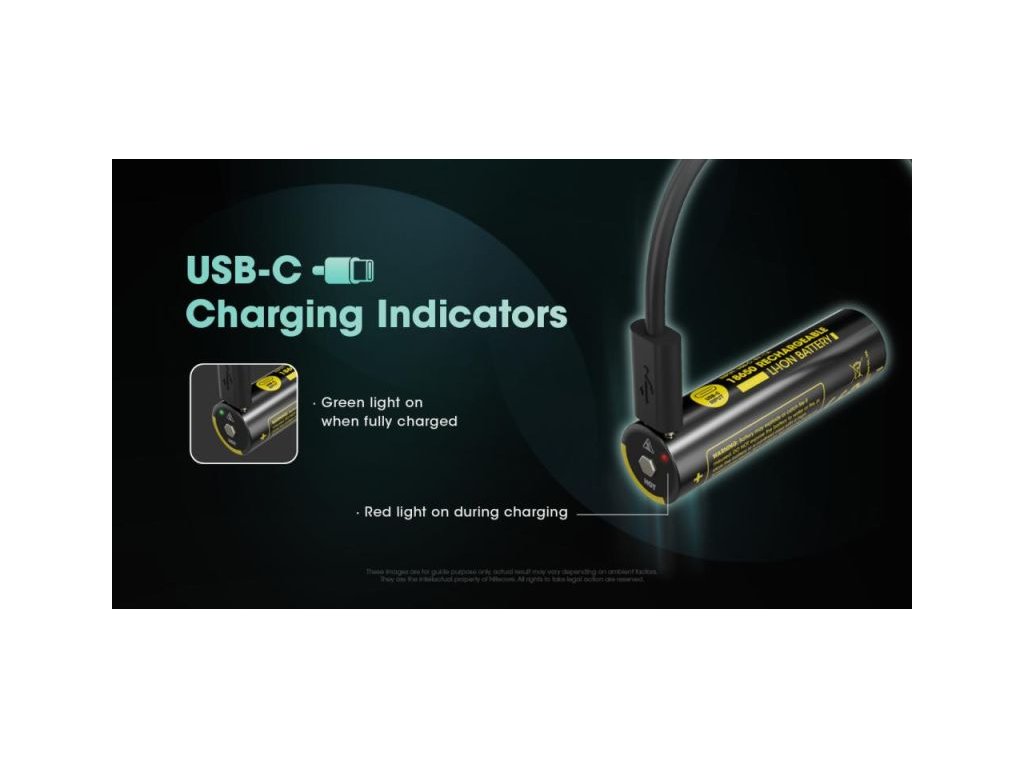 NITECORE akkumulátor típus 18650 Li-ion 3600 mAh USB-C töltőporttal. Az USB-C töltőport lehetővé teszi az akkumulátor közvetlen töltését a csatlakoztatott USB-C kábellel.