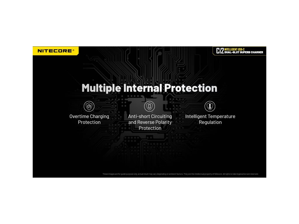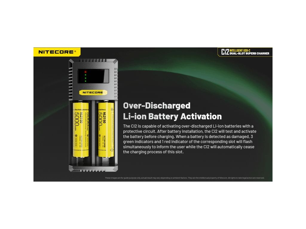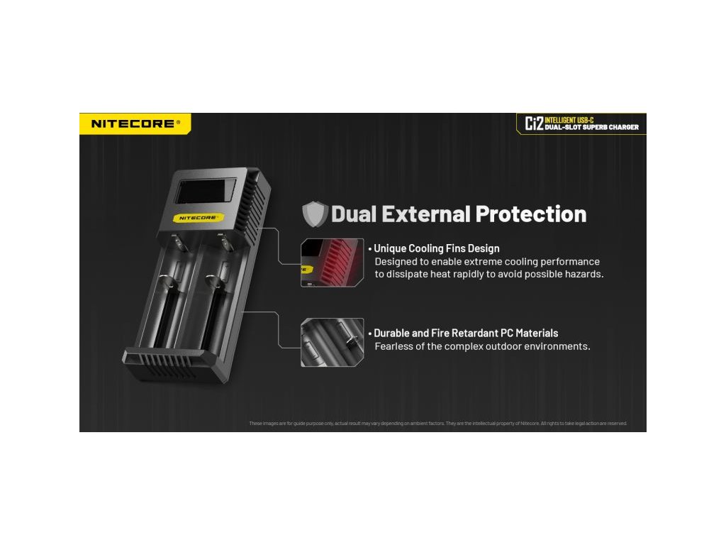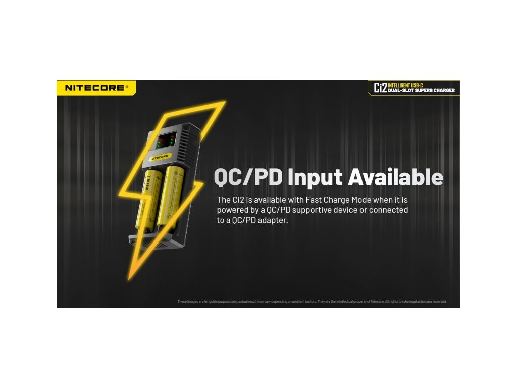 Univerzális intelligens töltő USB-C-vel, szinte minden típusú akkumulátorral kompatibilis (beleértve a 21700 mAh-t is), így elkerülheti több töltő birtoklását. A Ci2 töltő automatikusan felismeri a Li-ion, Ni-MH és Ni-Cd újratölthető elemeket, a LiFePO4 elemek kézi kiválasztásával pedig alkalmazza a megfelelő töltési módot. Minden mikroprocesszor által vezérelt töltőhely képes az akkumulátor önálló megfigyelésére és töltésére.