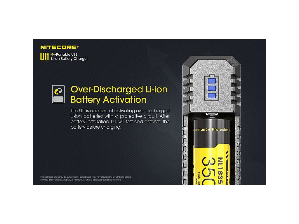 Az UI1 egy USB töltő Li-ion és IMR újratölthető akkumulátorok töltésére. A töltés egyszerű, csak helyezze be az akkumulátort, a töltő automatikusan érzékeli és megkezdi a töltést.